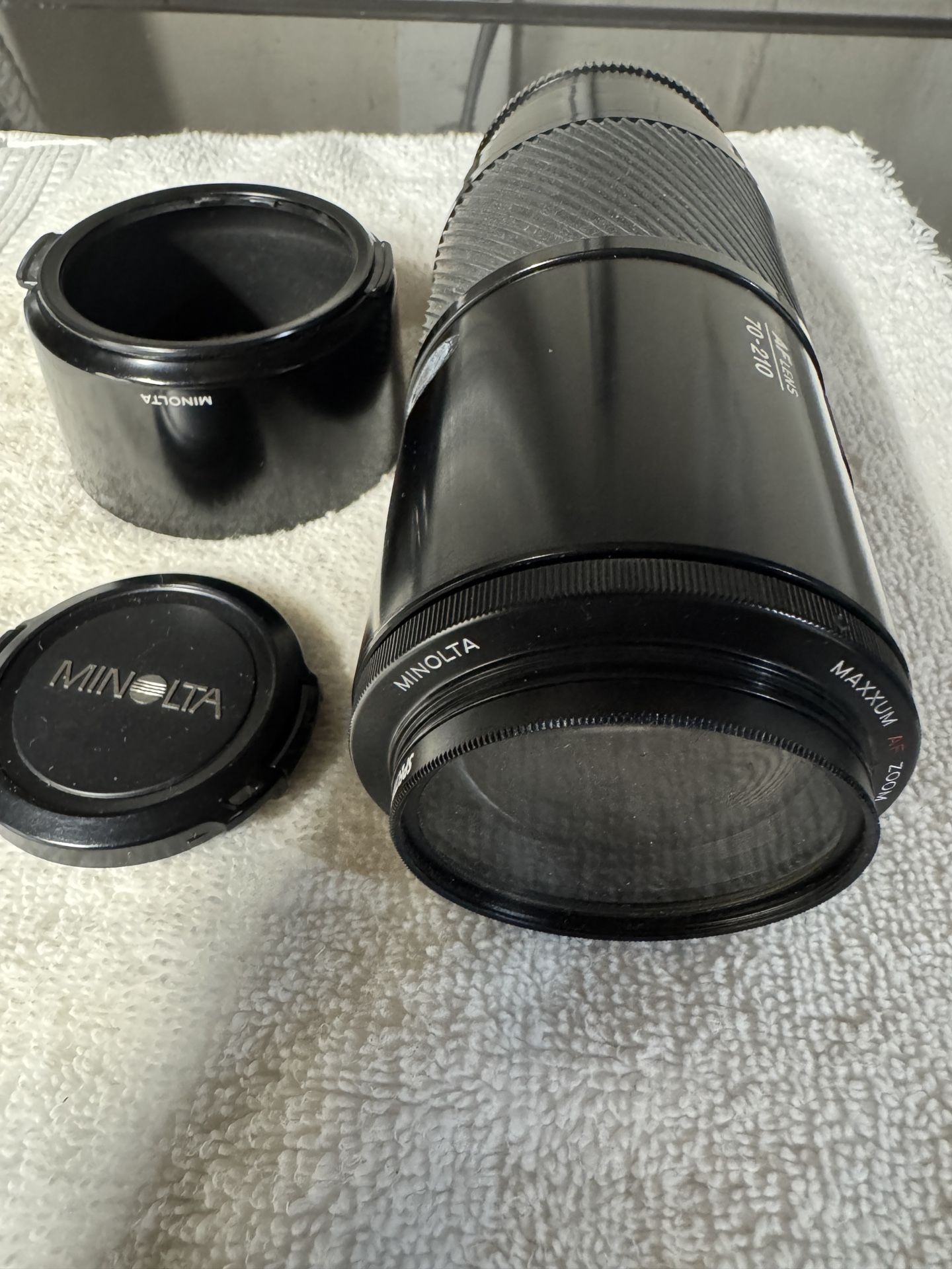 Minolta Auto Focus 70-210 telephoto with macro. cones with a soft case. Make a reasonable offer.