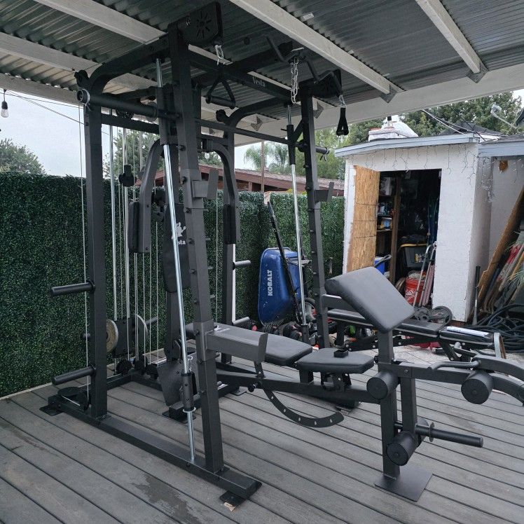 FREE DELIVERY 🚚 INSTALLATION AT EXTRA COST $$$ SHOWROOM AVAILABLE! NEW IN BOX! Need more photos let me know. Also have a Video available! 📷 《Offer only includes》 ✅️Vesta Smith Machine Sm2001 w all accessories and cable Attachments ✅️Multi-use Adjustable bench w/ leg workout station and precher station for biceps 💪 ‼️WEIGHTS AND EXTRA BARBELL ARE NOT INCLUDED ‼️ Vesta Sm2001 Smith Machine accessories and features ! Includes -- -- Hooks -- Spotter Arms -- 2 top side pulleys -- 1 Bottom back pulley -- 1 top center pulley -- Smith Barbell w/ saftey hooks! -- 2 D handles -- Ankle Strap -- Multi use Adjustable Bench with leg developer! Dimensions 86" Tall x 72" Wide x 83.5" Deep 🔴🔴🔴NEED BARBELL AND SET OF WEIGHTS 🔴🔴🔴 CHECK OUT THIS DEAL DOWN HERE! 🔥🔥$$$$$$1300 Bundle Deal 🔥🔥 ✅️Vesta Smith Machine SM2001 ✅️ Multi use Adjustable bench w/ leg developer ✅️230lbs Bumper Weights 45s/35s/25s/10s ✅️7Ft 45lbs Olympic Barbell w/ pair of clips! 🚛FREE DELIVERY 🚚 Intrested in more gym equipment shoot me a message! I can Help you Build Your Home Gym! Dumbells, kettle bells, more squat racks and Smith machines available