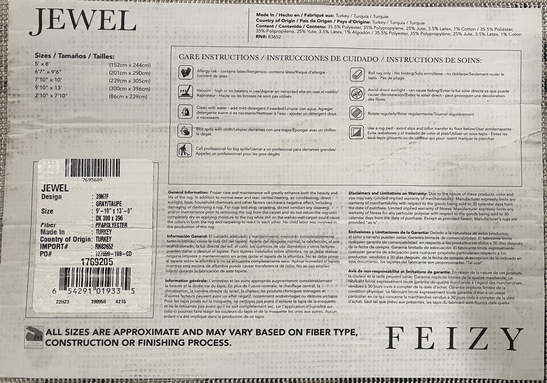 Large 9’-10” x 13’-0” Area Rug