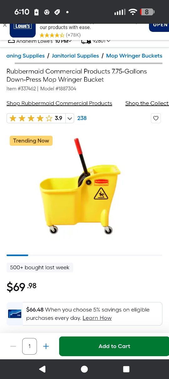 RUBBERMAID COMMERCIAL MOP BUCKET, MOP, AND WET FLOOR SIGN. SELLING AS A SET. CITY OF ORANGE.