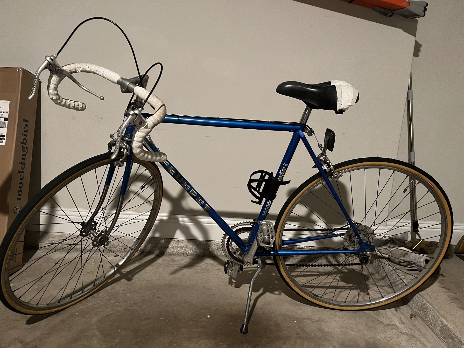 Peugeot 103 vintage road bike from 1980. Brand new tires and tubes, tuned up and ready to go. Friction shifters work great too! Just needs a new seat and some handle wraps. Asking $100 but make me an offer!