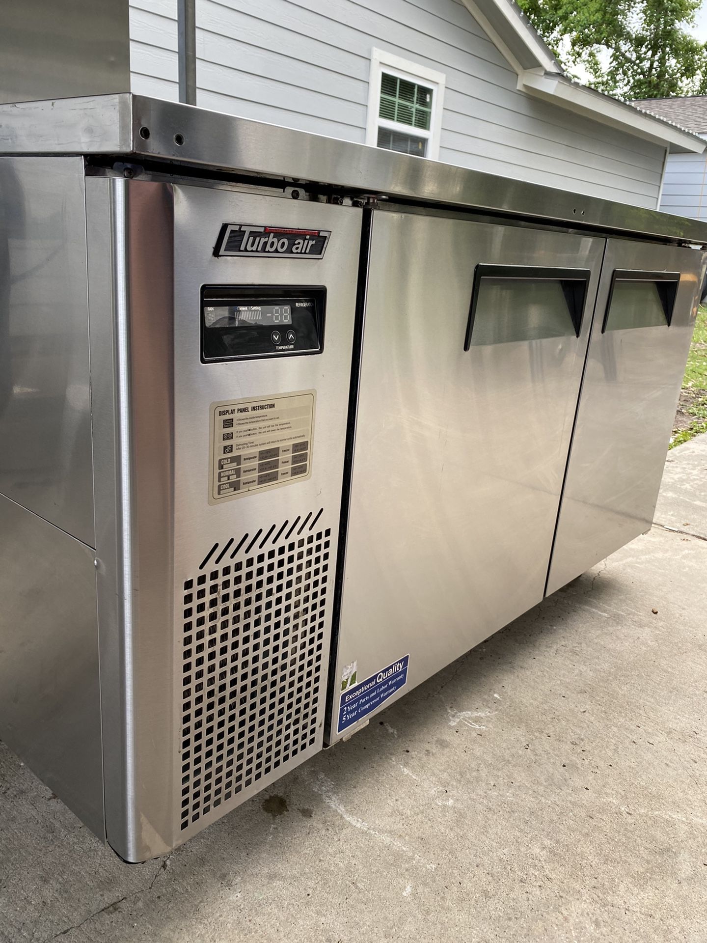 Like new turbo air prep table ideal for toppings, salsa, chopped vegetables, vegetables, cold food or whatever you want to use it for.. 2018 still under turbo air factory warranty 5 years on compressor and 2 years on labor and parts Very clean ready for any business $1,600 with new plastic trays on top $1,500 whit out them 1 month warranty with us Delivery available Available: 3 Restaurant equipment, salsa bar, pizza prep table, sandwich cooler sandwich prep, cooler, true, freezer, buffet, cold food