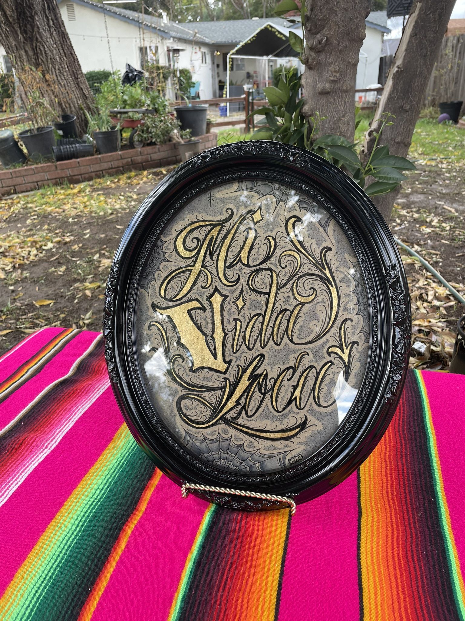 Mi Vida Loca ✦ Available for purchase ✦ Dimensions: 15” x 17” #Modesto #modestoartwork #modestoart #art #artwork #artforsale #artworkforsale #lettering #script #tattooart #mividaloca