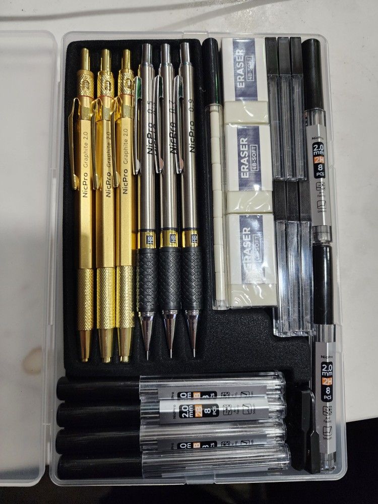 0.5, 0.7, 0.9mm & 2mm Lead Holder(2B HB 2H) For Sketching Drawing With Lead Refills Case 25 o.b.o Never used all brand new any questions let me know