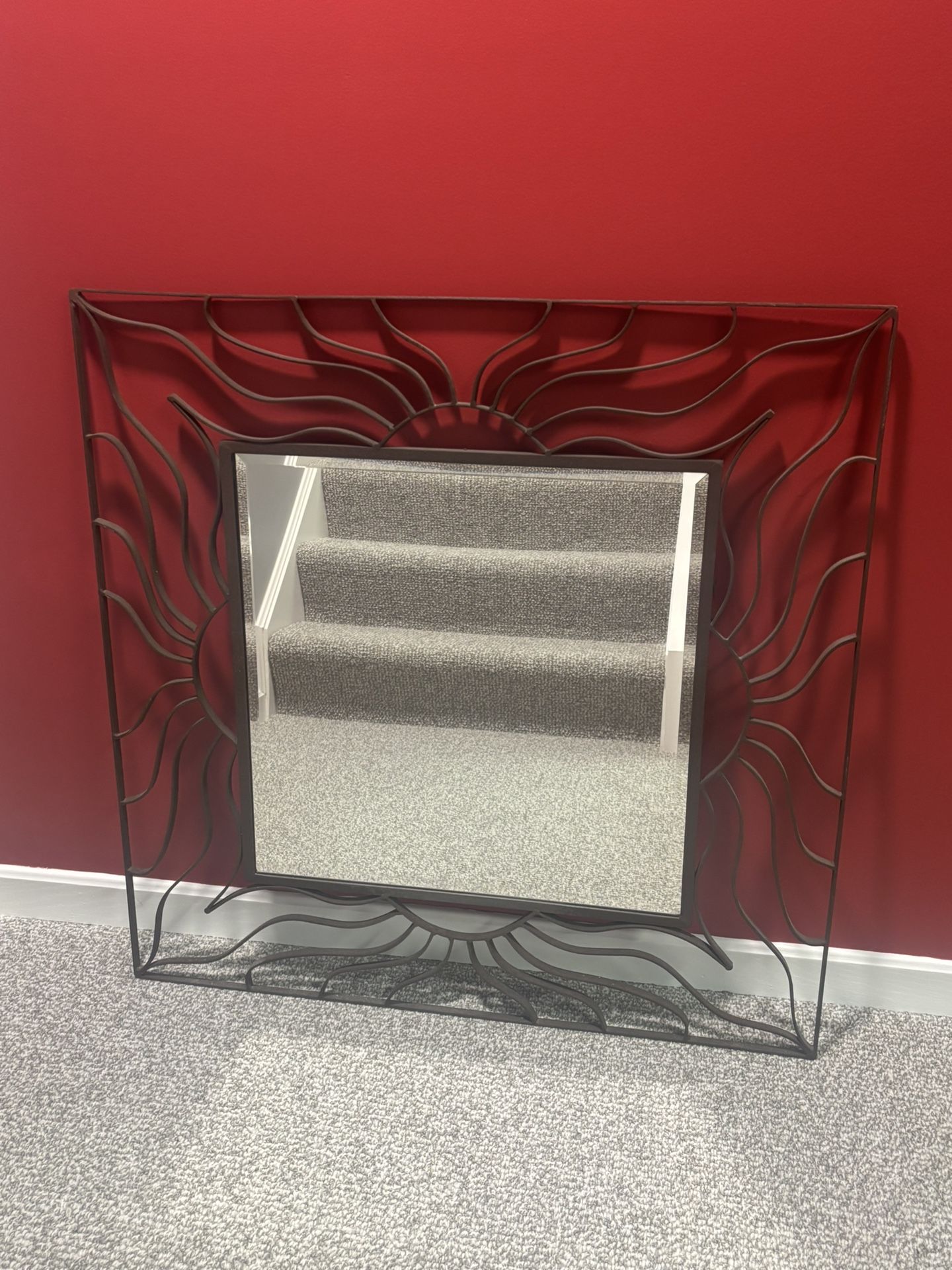 Brown metal mirror. 33in x 33in. Looks beautiful in any room. Cash only. No holds. Pick up Painesville Township.