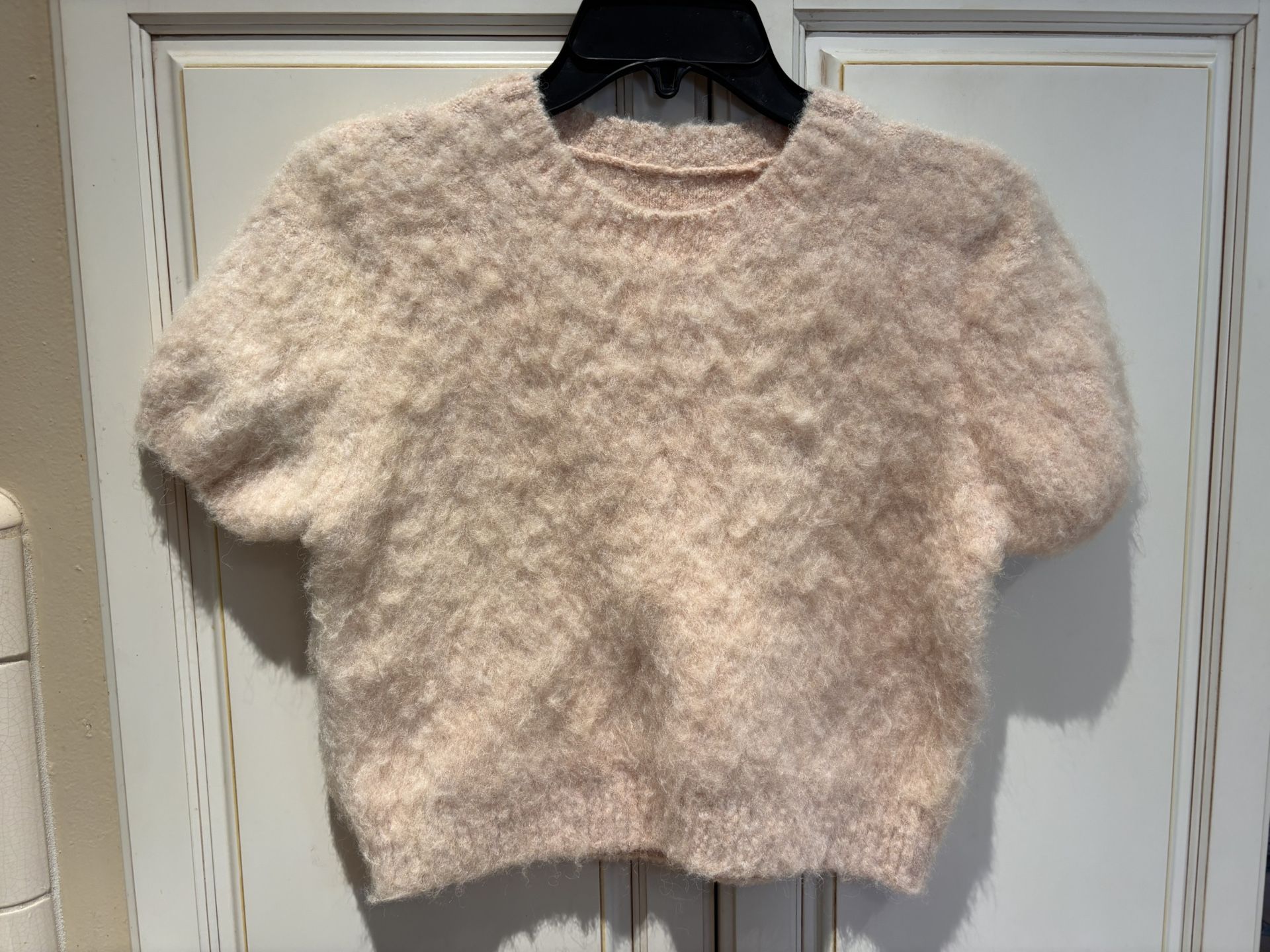Soft Pink Fuzzy Knit Sweater Blouse Short sleeve no tags or labels looks like size S/M