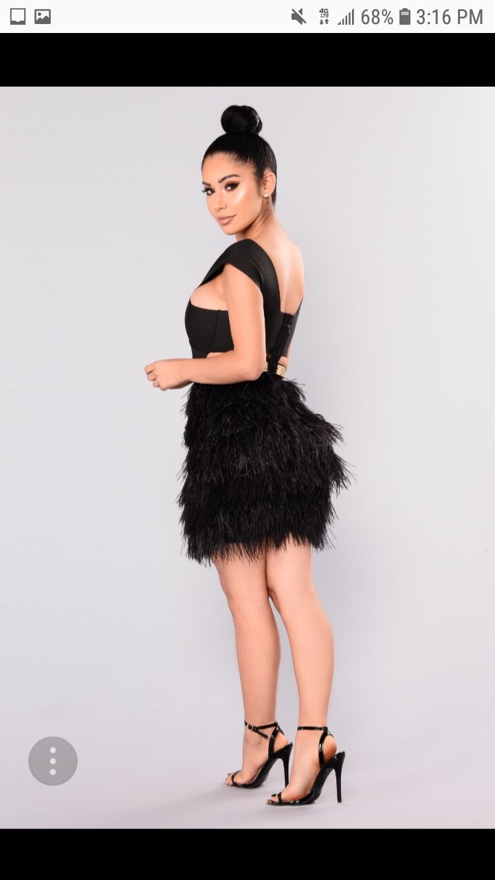 Fashion Nova cut out party dress with feathered bottom. brand new ordered too small. Not for big busted women. Size L