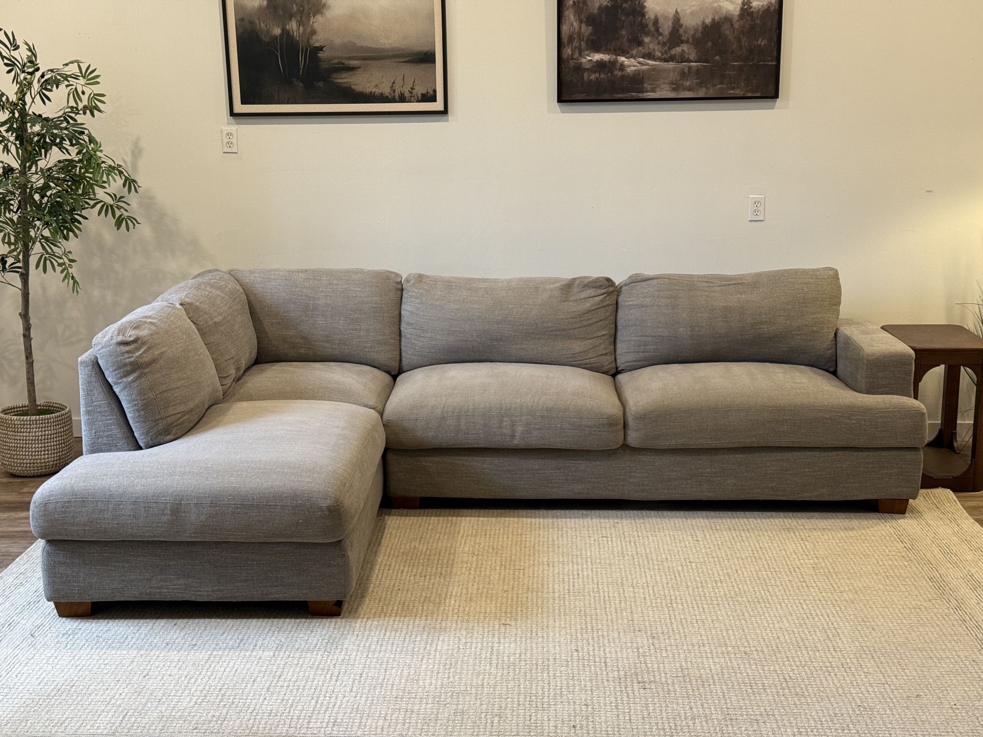 Light gray/beige Costco sectional sofa clean, comfortable, and in great condition Dimensions: 121 x 81 Delivery π available Same/Next day
