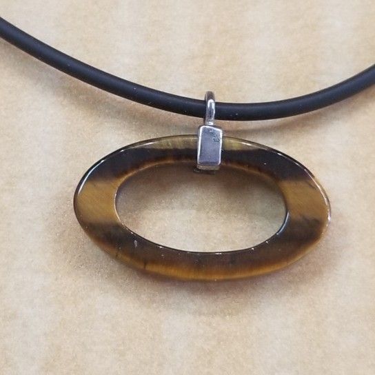 Tigers Eye pendant. Set in sterling silver and on a 16 inch rubber cord with sterling silver ends and clasp.