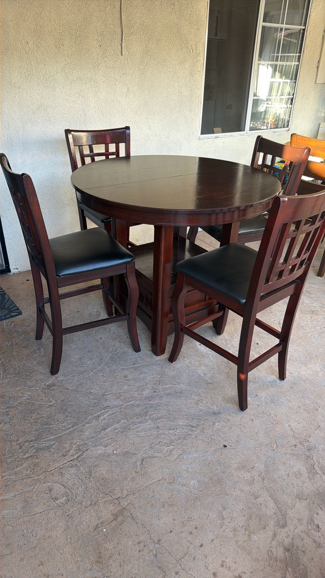 Comedor Alto con 4 sillas recién tapizadas todo está en buenas condiciones medidas del comedor 42” alo redondo 36 “ de altura el comedor tiene extra extensión,