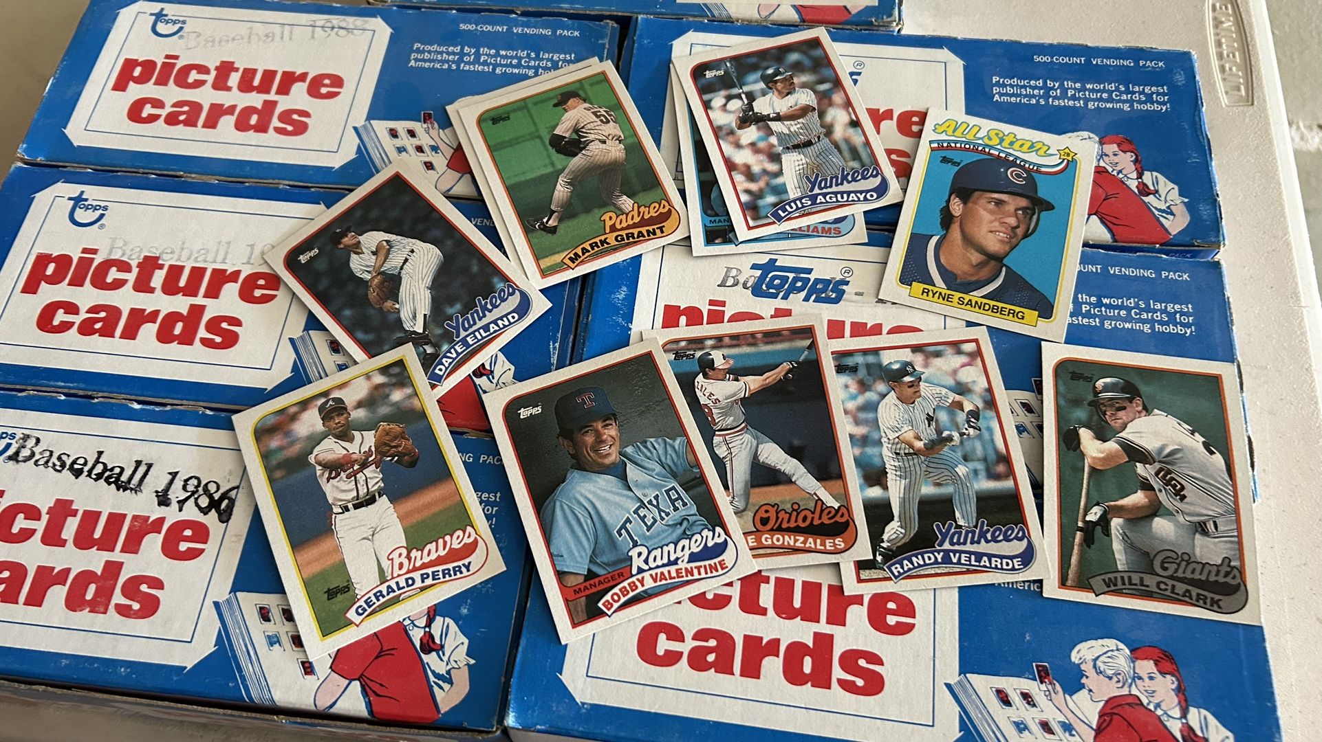 Topps Baseball cards ranging from years 1986 thru 1992. Each box is a year with approximately 500 cards and in perfect condition. Over 3000 cards total.