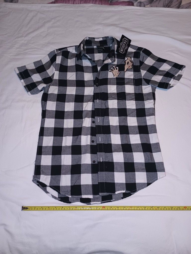 Beetlejuice Checkered/Plaid Black and White Small Shirt