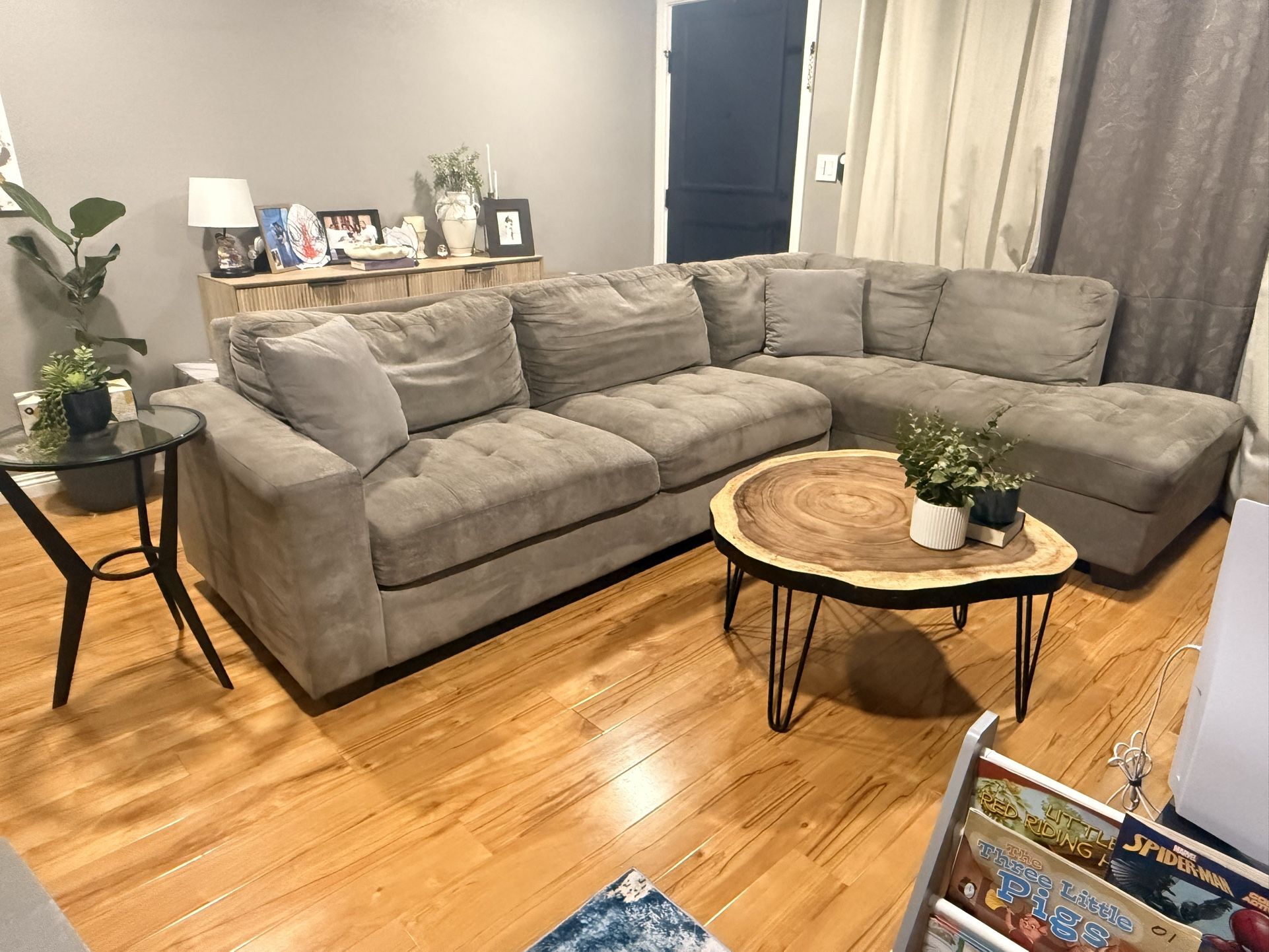 Grey Sectional couch with 2 pillows $400 OBO Purchased at Costco a few years ago Smoke free home See last 2 pictures for dimensions No ottoman Can be taken apart into 2 pieces for easy transport. My husband is here to assist with loading. No rips or stains Pick up in Boyle Heights 90023
