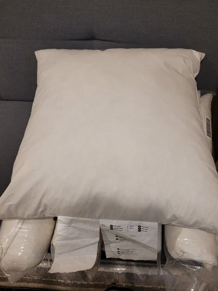 Two pillows. 20 in.x 20 in. Never used. $5 each. Cash only, please.
