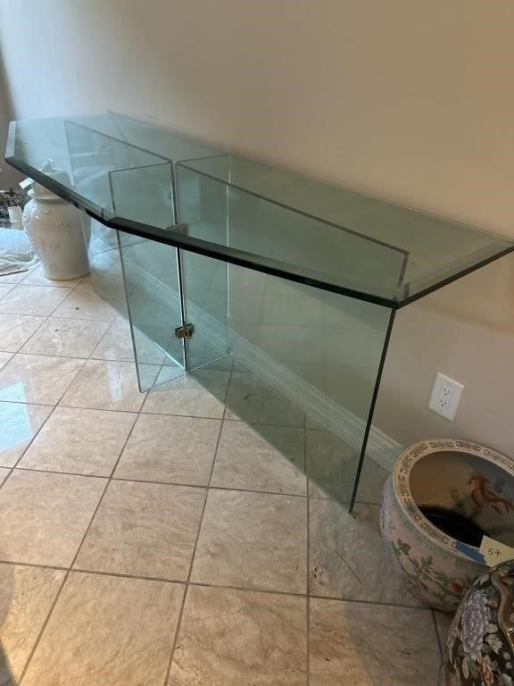 For Sale is an Extremely Nice Vintage Beveled Glass Console/ Entry Table. This table is Very Very Heavy, and it has a very modern look to it. Its dimensions are 78” long X 25” deep X 33” tall. I’m asking $100.00 for the Beveled Glass Console/Entry Table, pickup is at the Attic Self Storage Facility on Inwood Road