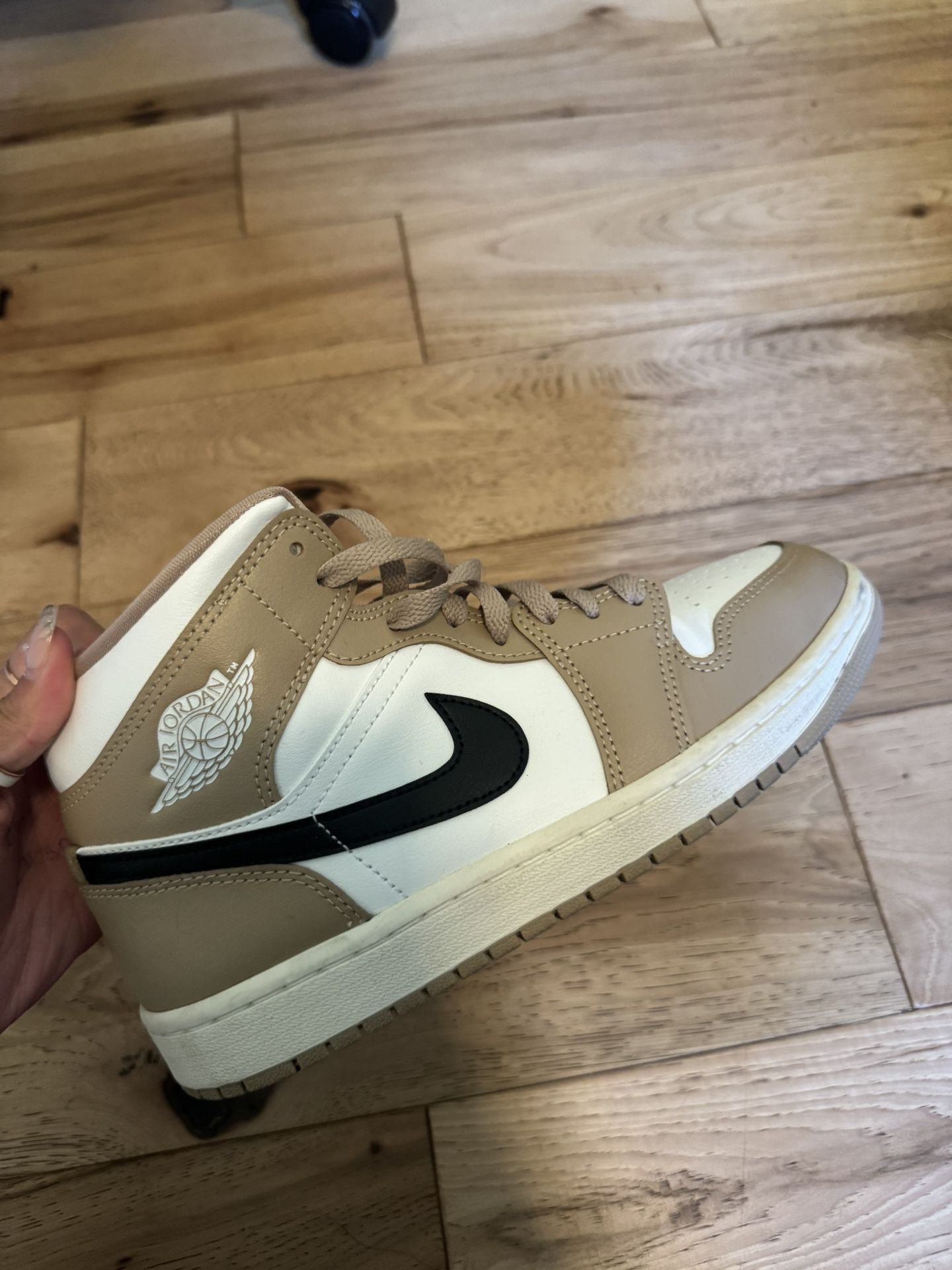 wmns air jordan 1 mid sail/black desert, brand new with box worn once
