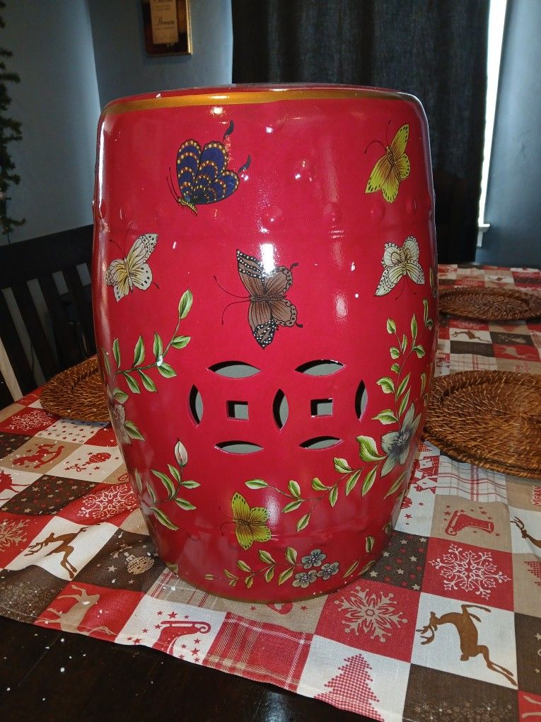 Gorgeous butterfly 🦋 red garden stool Perfect for living room,patio or garden It's brand new I'm asking for 75$ OBO