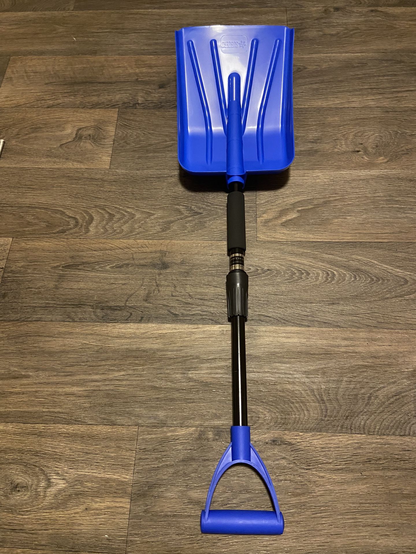 Auto Emergency Extender Shovel, Heavy duty plastic, 3’ long , extendable , the measurements shovel itself is : 9” by 13” Grey and Blue, Listed on Amazon $26.00 , asking $15.00