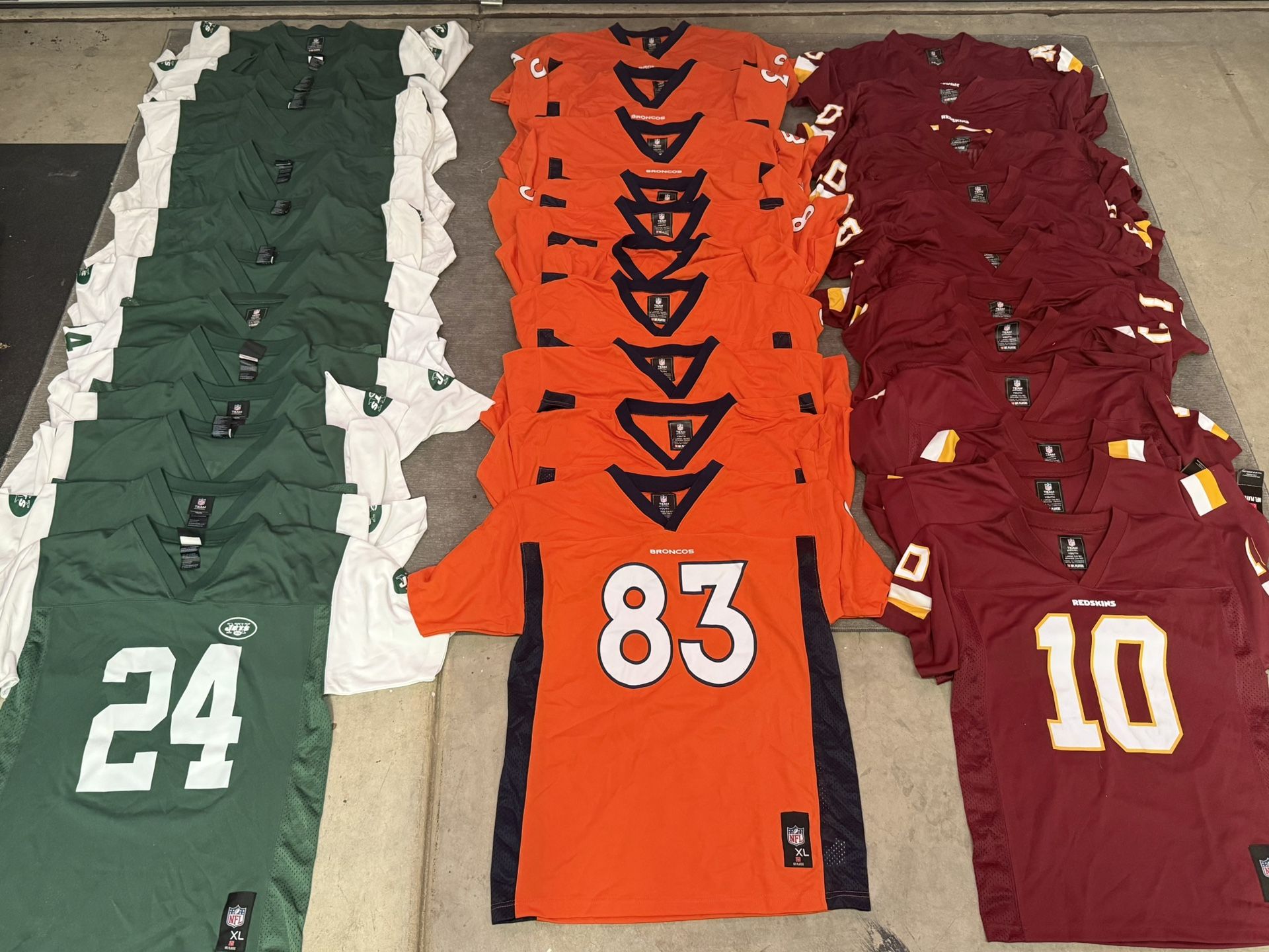 The Jets, Redskins, and Bronco jerseys are brand new and some still have sales tags on them. The Bears,KC, Viking jerseys are used but in great condition. No low ballers.