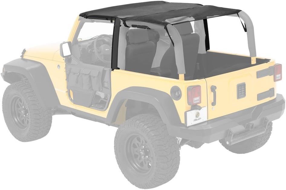 Bestop Mesh Safari Style Bikini Top For 2010-2018 Wrangler JK 2DR (Cable Style) Brand new. Open box. Complete. Mesh fabric material is strong and doesn't rip. Covers entire passenger area of vehicle from front seat area back to rear cargo area Exclusive cable and spring design compatible with OEM door surrounds or Bestop replacement door surroundsmore tools Designed to install quickly with windshield channel included This fabric is a mesh open weave design