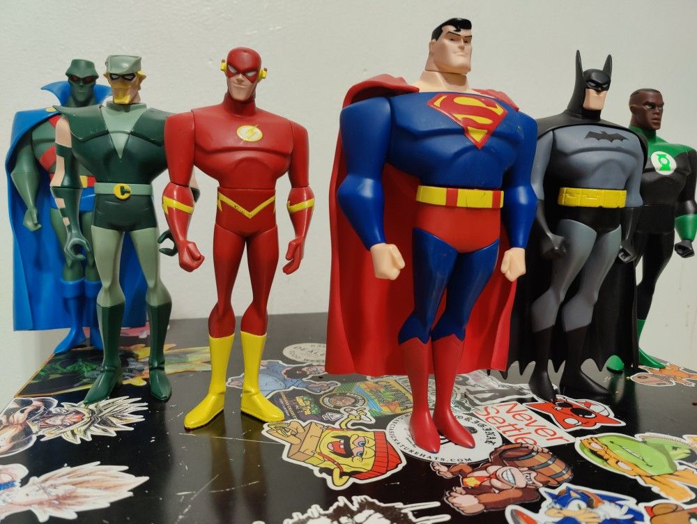 Pre-owned Minor scuffs Great Condition Superman Batman The Flash (Thunder Horns are chipped) The Martian Man Hunter Green Arrow The Green Lantern