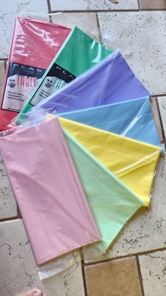 7 Plastic Disposable & Reusable Table Covers, Rectangular Size 54" x 108" multi-colors