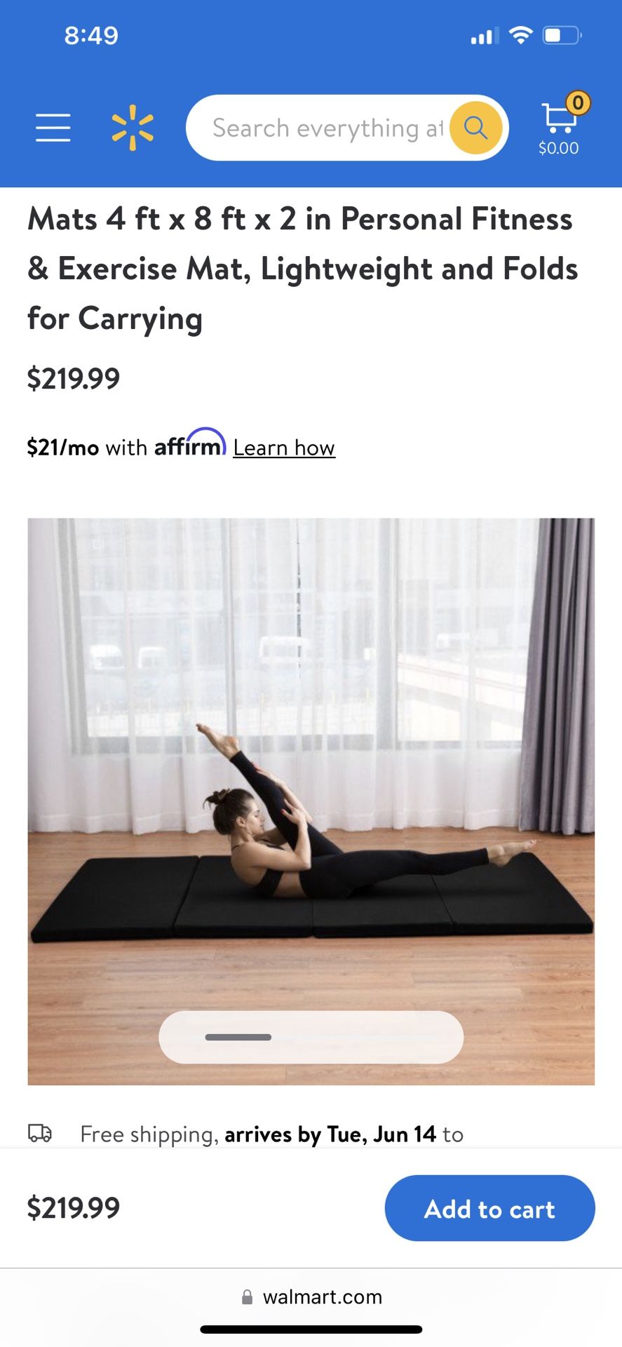 Mat 4 ft x 8 ft x 2 in Personal fitness & Exercise Mat Lightweight and also folds for easy carrying