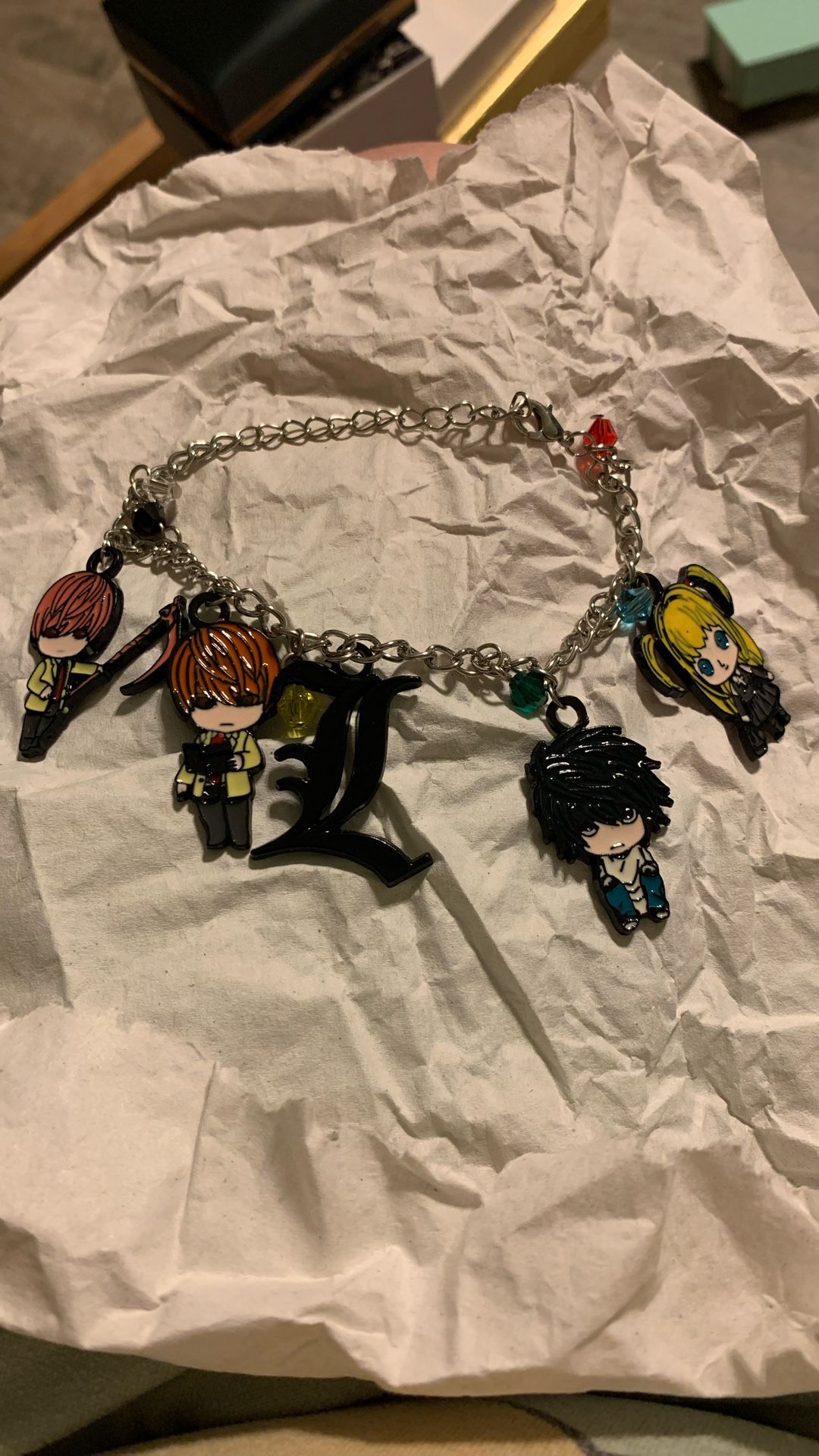 This is a Death Note anime charm bracelet featuring characters and symbols from the series.