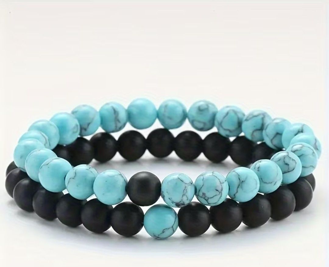 ** NEW "* ° (1) Turquoise (1) Black ✓ Stylish and trendy: Classic stone beads design is perfect for both men and women ✓ Perfect couple gifts: Comes in set of 2, ideal for couples to wear and show their love ✓ Durable and comfortable: Made with high quality materials, these bracelets are comfortable to wear and last a long time ✓ Versatile: Can be worn to any occasion from casual to formal events ✓ Meaningful: A creative gift that symbolizes the bond between 2 people ✓ Easy to wear: Elastic design makes it easy to put on and take off