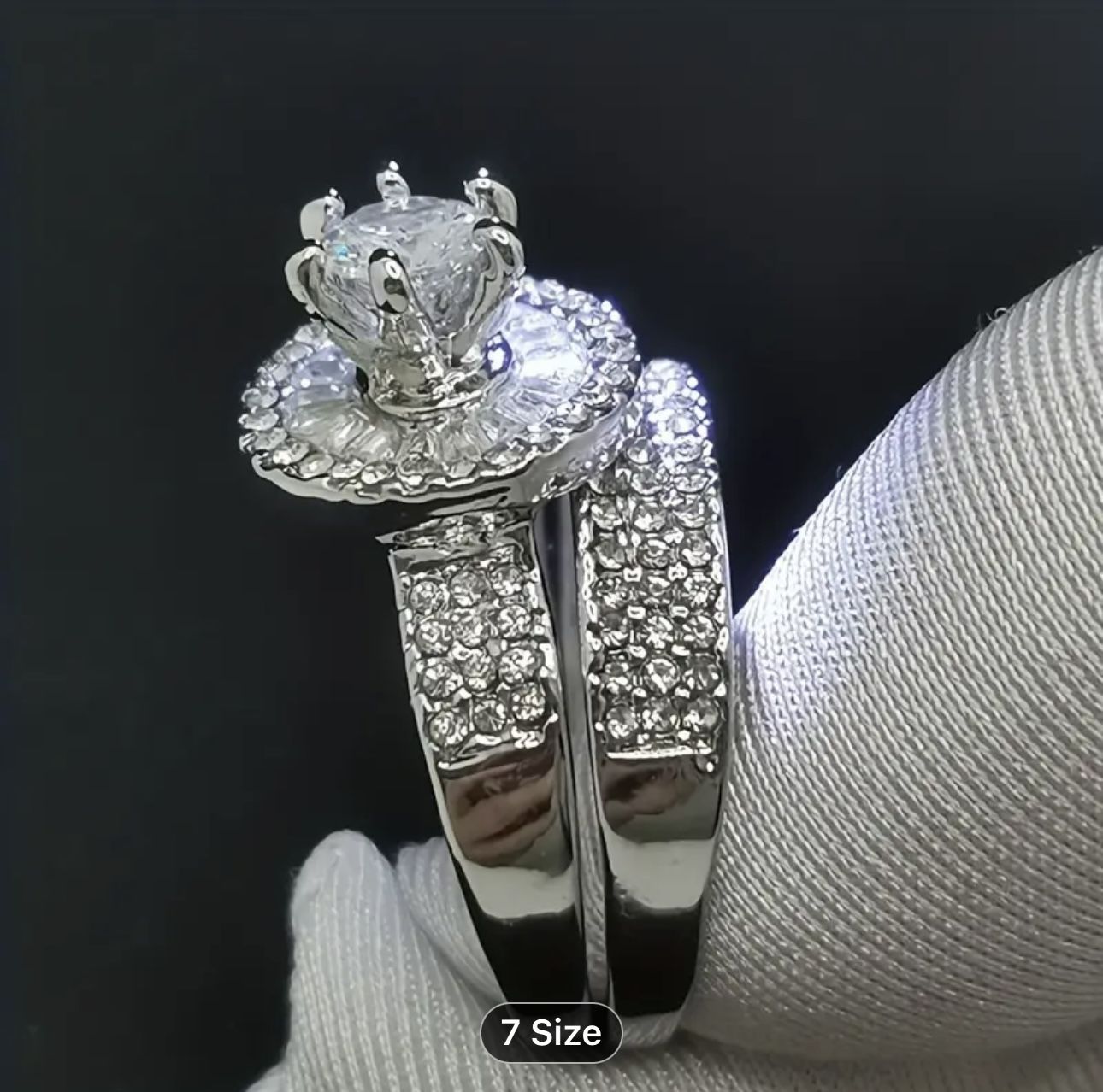 2pcs/Set Glamorous Classic Ring Set - Simulated Diamond CZ Jewelry - Romantic Anniversary Gift for Couples - Stylish Mens & Women