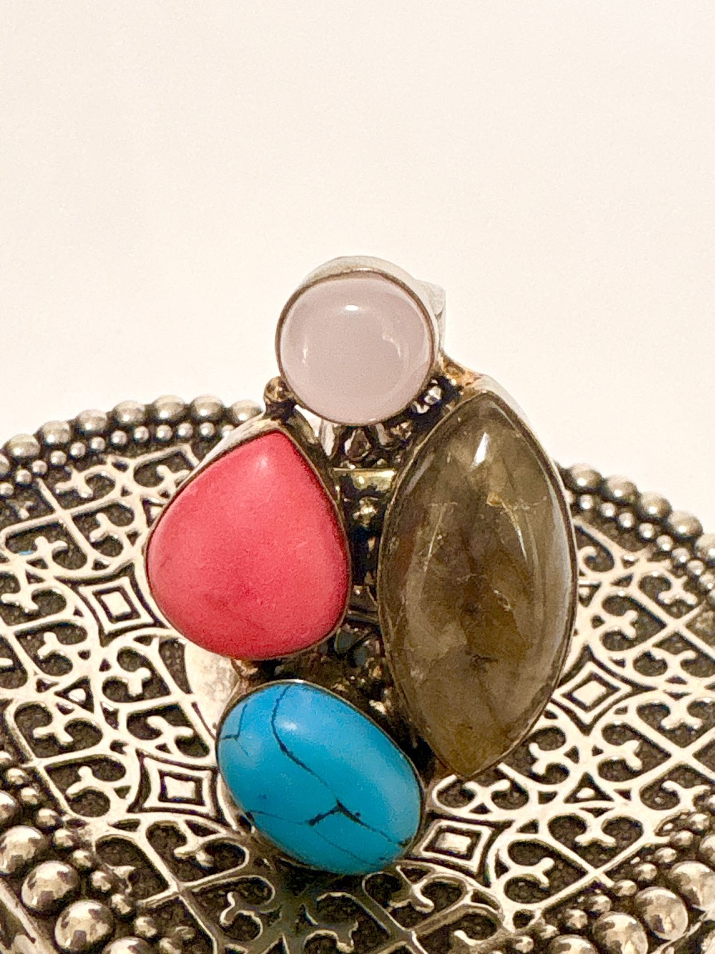 Beautiful Unique Multi stone brass ring