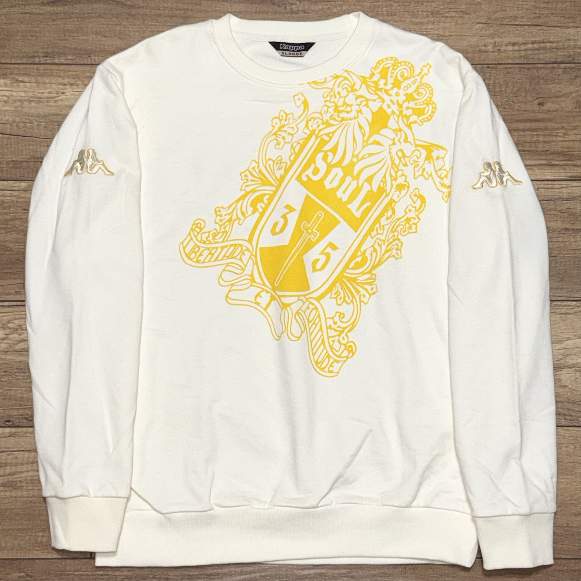 Kappa Exclusive Big Crest Logo Beige Crewneck Embroidered Sweatshirt Womens XL
