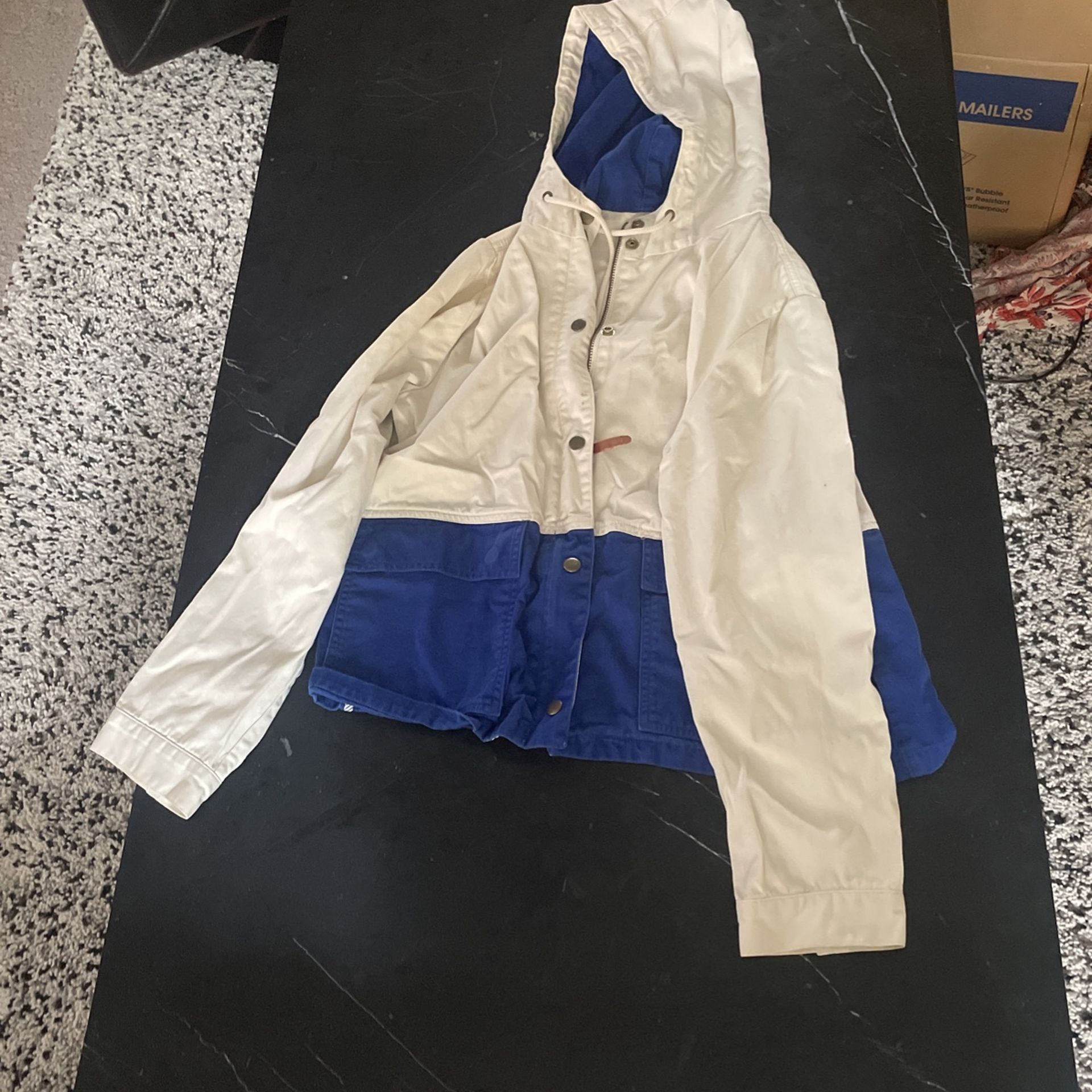 Jcrew Small Button Up Raincoat Blue And Tan Canvas