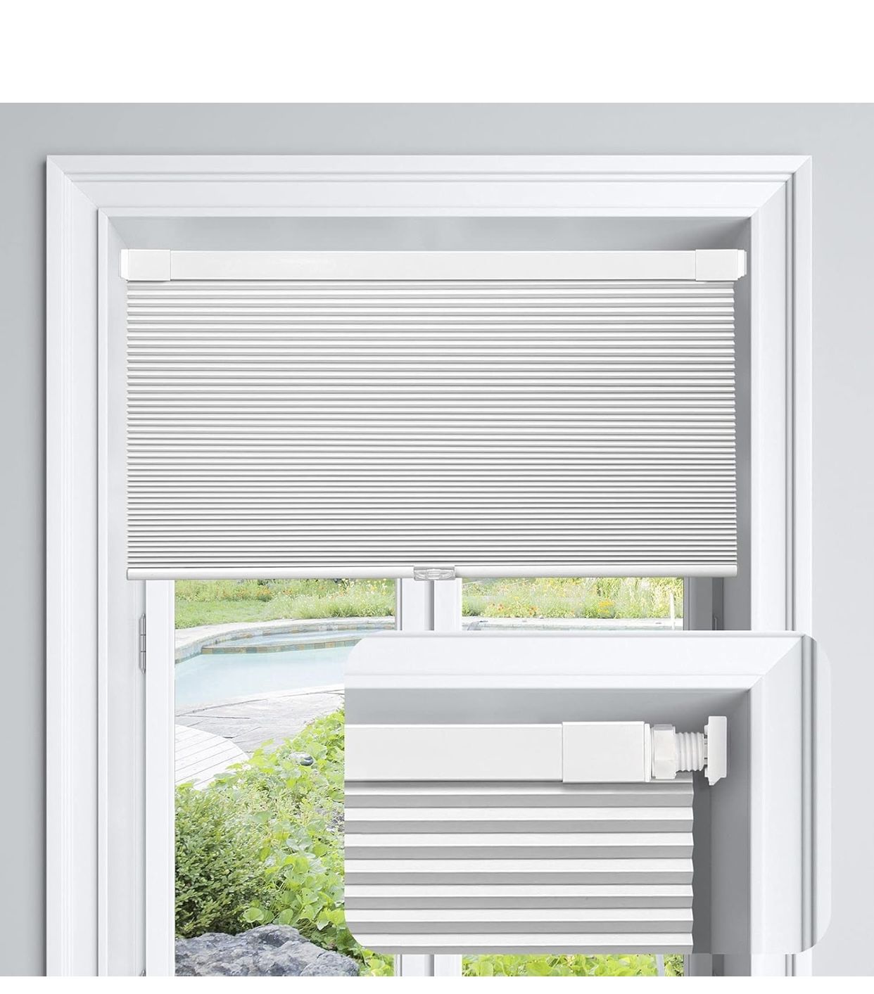 NEW STILL IN BOX LazBlinds patented technology No Tools-No Drill system allow it no need to drill any holes on your window frame A standard 3/8 inch deduction is made to the width for a proper INSIDE MOUNT fit. The actual blind size is 22 5/8" W x 36" H, perfect for window 23" W x 36" H. The unique spring rod can extend 1 inch in total, allow the blind to fit for window size W22.7-23.6 X H36