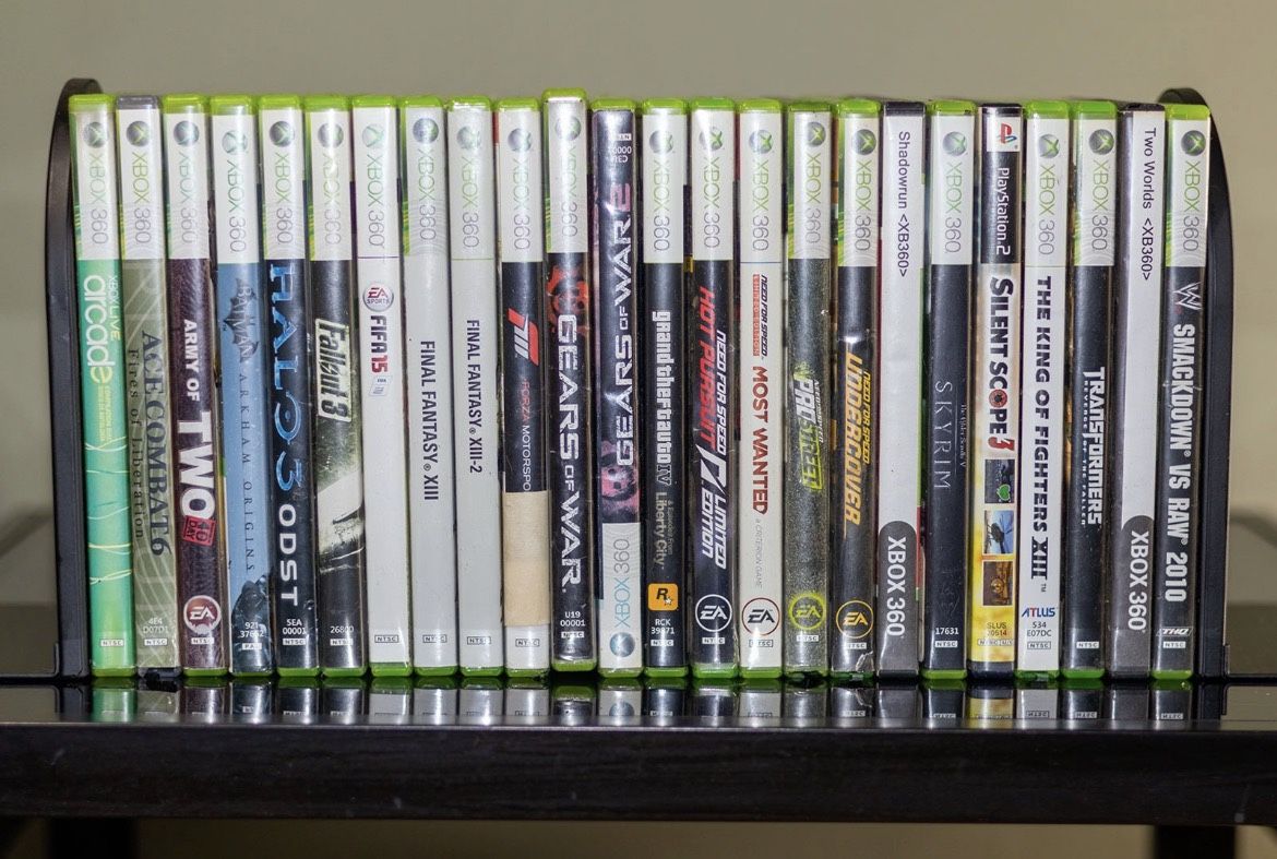 (24) Xbox 360 game collection in good overall condition with cases and normal light shelf wear. Includes a strong mix of classic and fan favorites like Halo 3 ODST, Gears of War, Fallout 3, Final Fantasy XIII, Need for Speed Most Wanted, GTA Episodes from Liberty City, Skyrim, Silent Scope 3, King of Fighters XIII, SmackDown as Raw 2010 and more. Selling as a bundle for $150