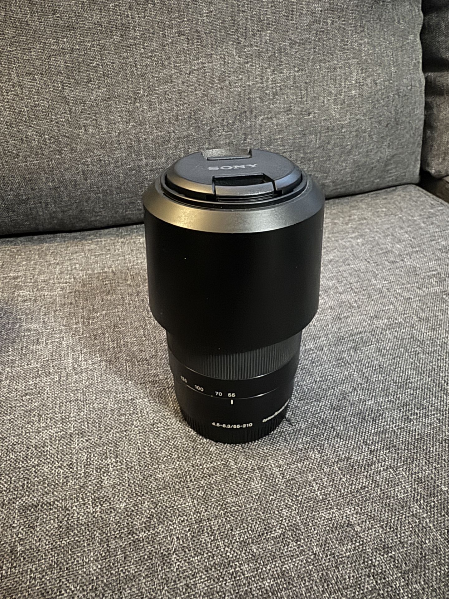 Sony 55-210mm zoom lens for Sony E-mount (APS-C). Optical SteadyShot (OSS) works good for handheld shots. Includes front cap and rear cap as well as comes in orginal packaging. I also have the ND and UV filter for this lens if interested.