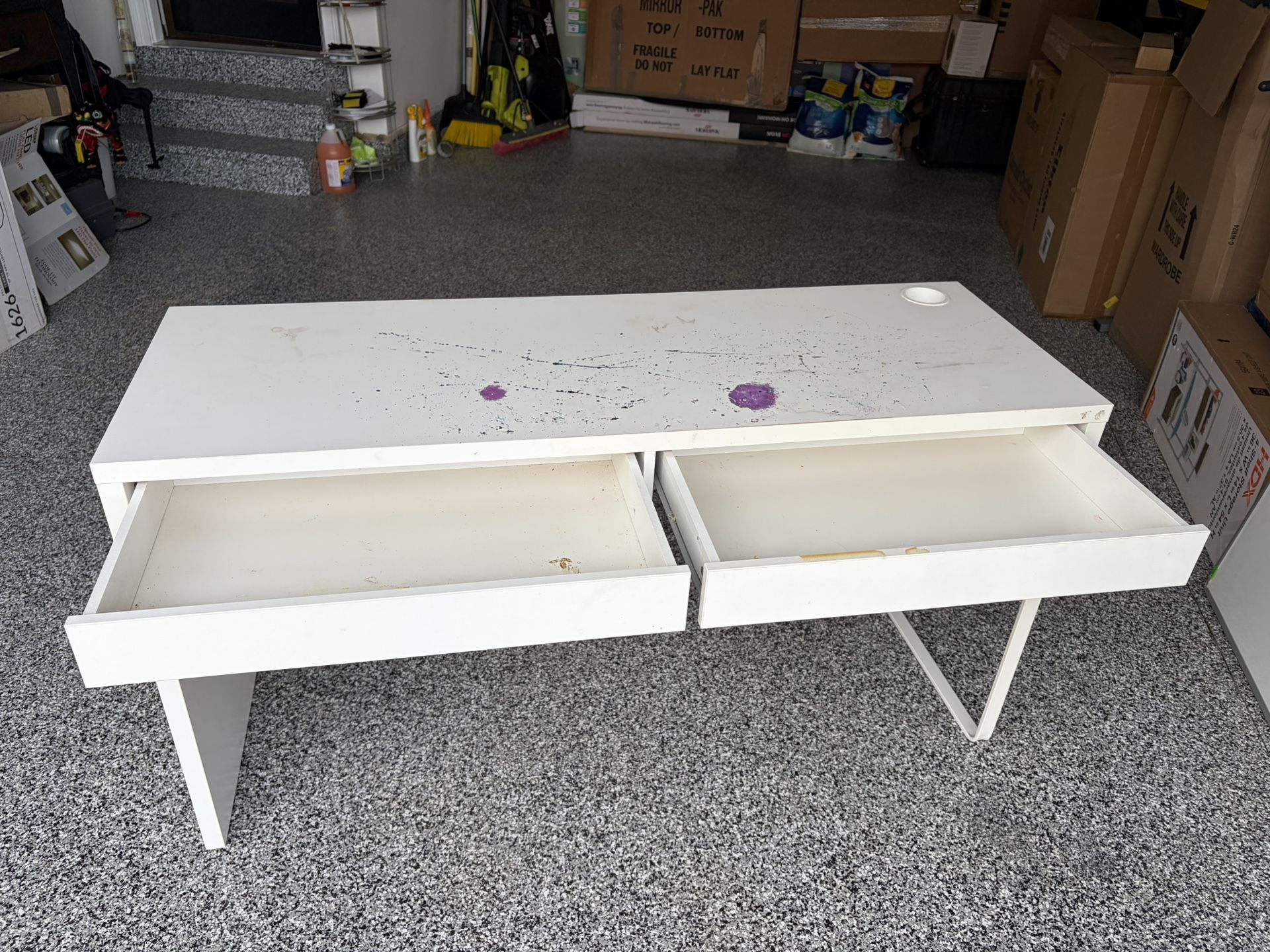 Large white desk About 4ft 8in length & 20 inches width Pick up off of Chester Rd in Fairview