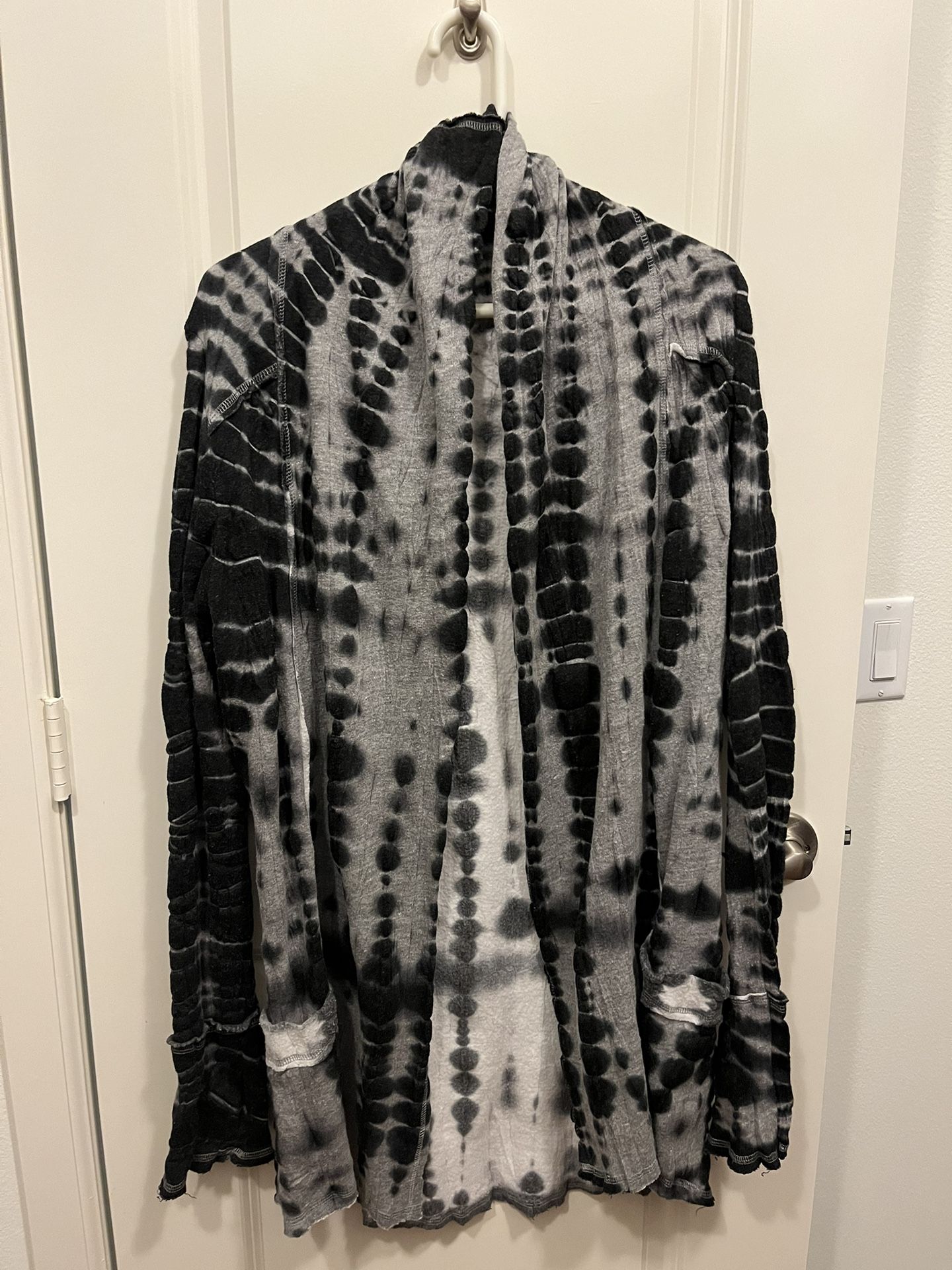 Sweater cardigan- black& gray tie dye. Size medium. Great condition. Very warm