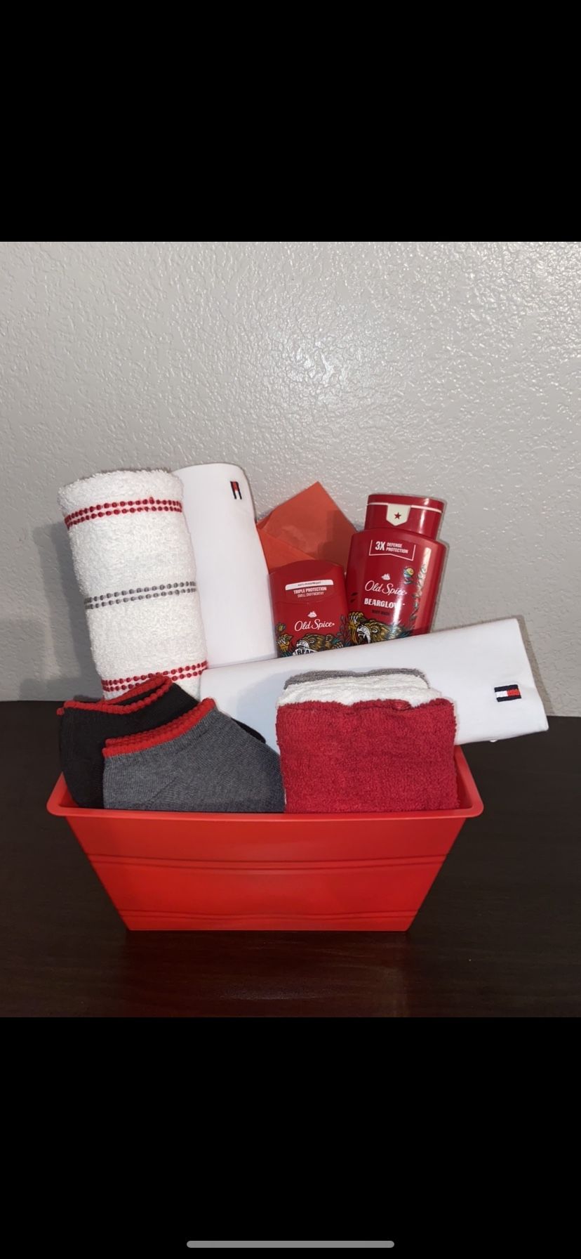 (2) T-Shirts (2) Pairs of Socks (1) Body Wash (1) Anti-Perspirant & Deodorant (1) Bath Towel (3) Hand Towels