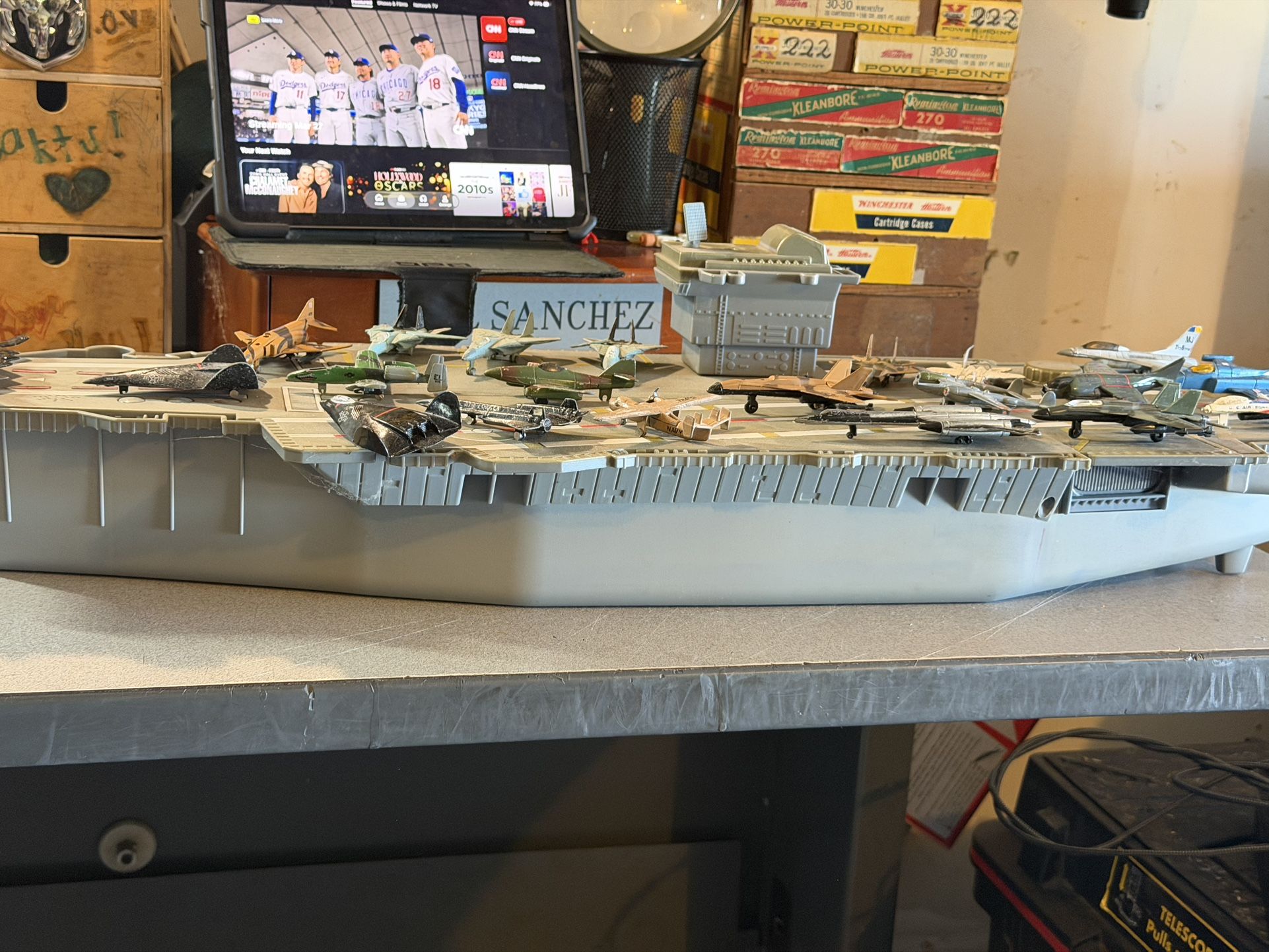 1998 Redbox 68 Aircraft Carrier Toy Ship With 21 Die Cast Planes 31” long
