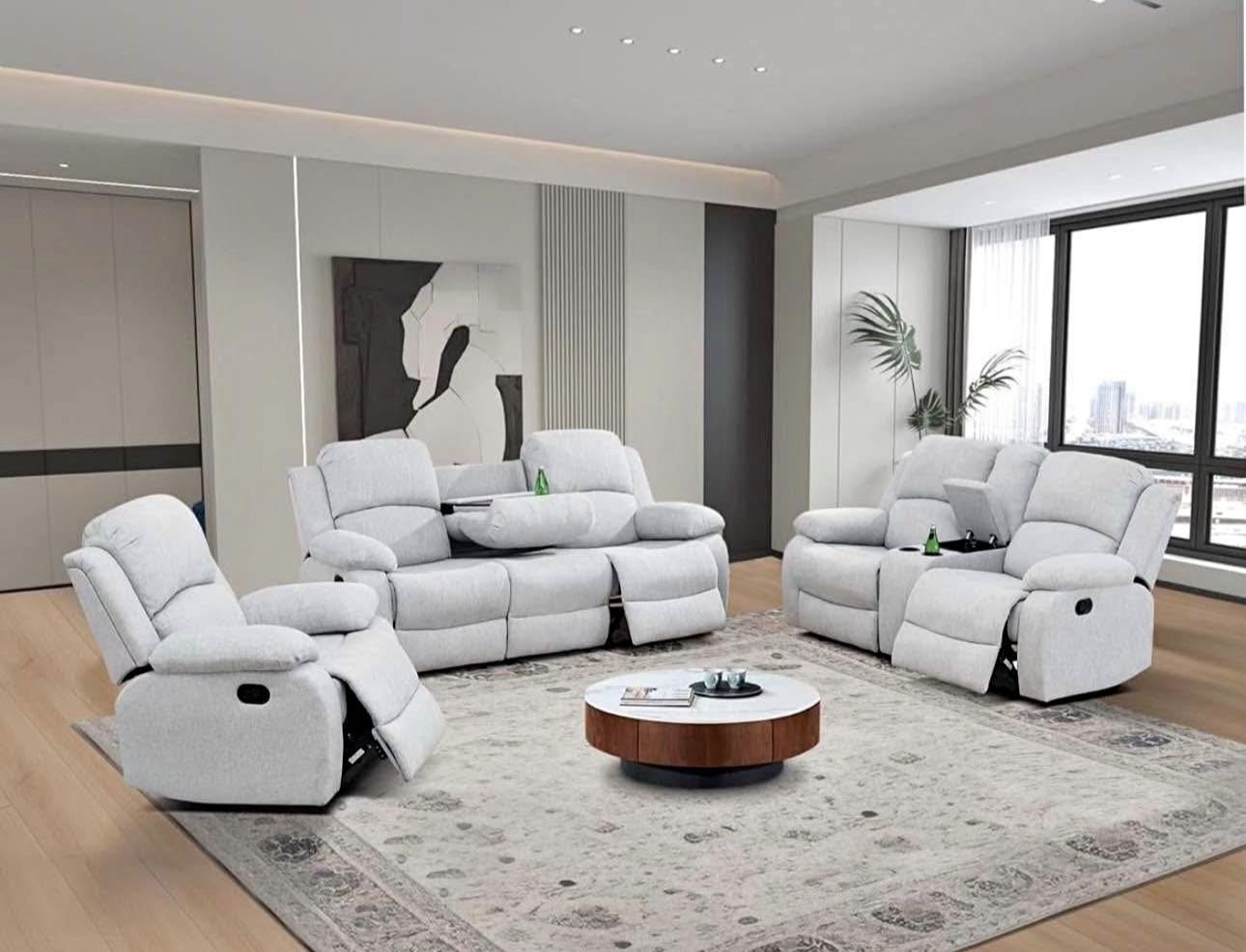 Gray Microfiber Fully Reclining Three Piece Couch Set
