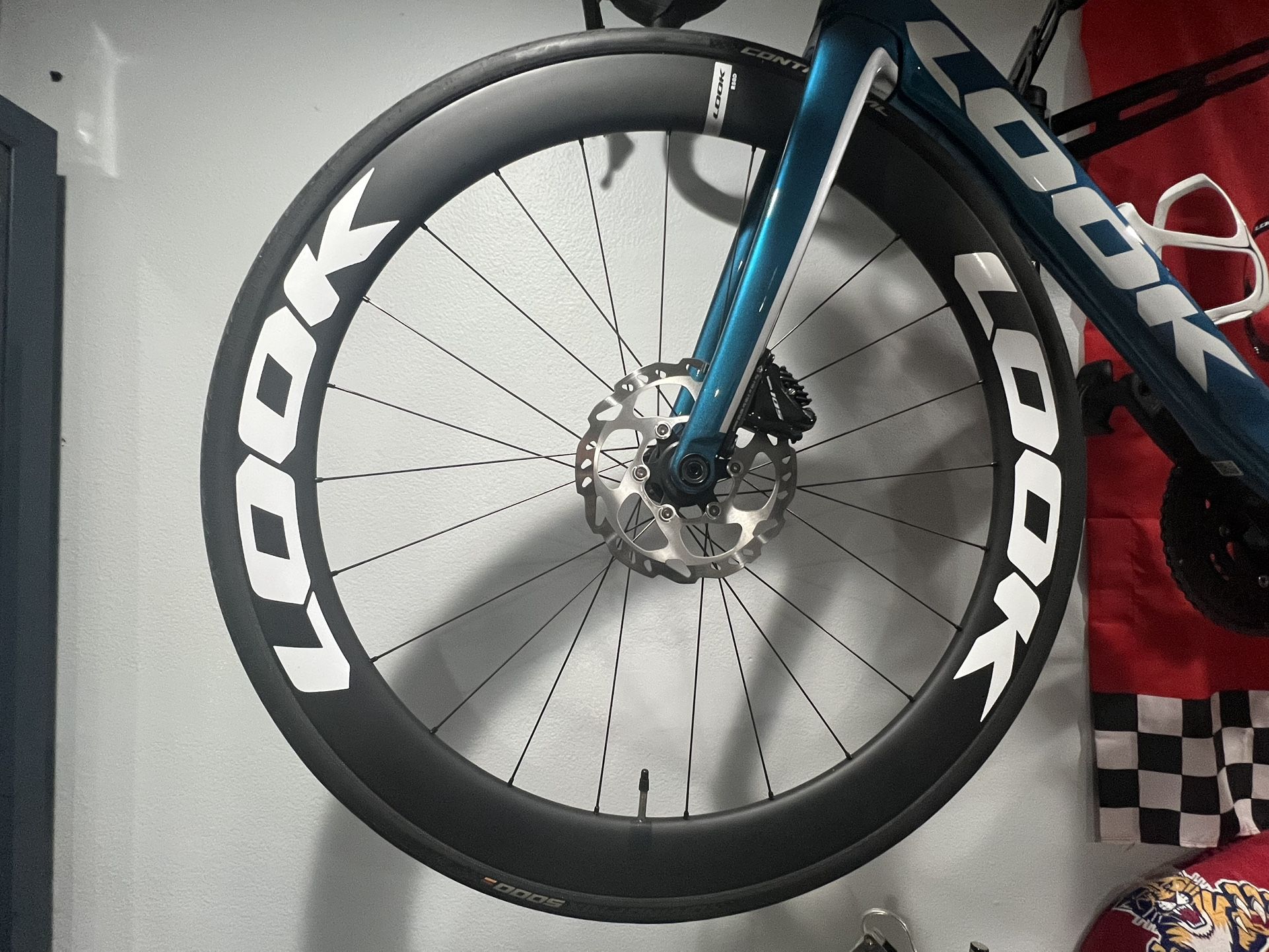 Like new set of Look R50D carbon wheels. -50mm depth. Great combination between fast acceleration and balance. -No crashes, dings, scratches. -Carefully maintained. -Purchased brand new 3 months ago from 88Cycling. -Including 28mm Continental GP5000 tires which were bought a month ago. -DT Swiss 370 rear hub with upgraded 54t ratchet. -Standard wheelset included on Look 795 RS. -Rotors and cassette not included. Please feel free to reach out with any questions.