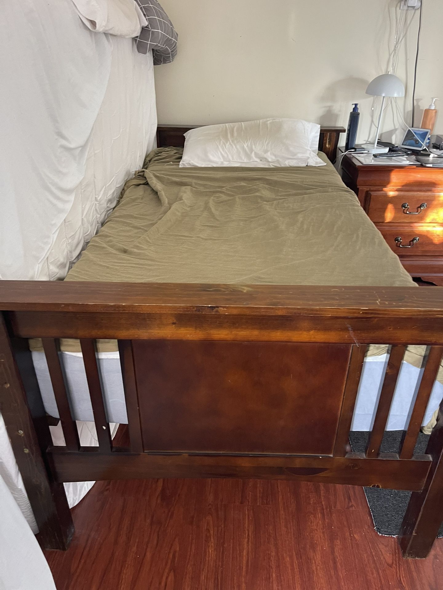 Bed twin in good condition Coma individual en buenas condiciones El colchón siempre ha estado protegido con un plástico no tiene ninguna mancha. Está como Nuevo # es de una buena marca se puede llevar con un precio extra