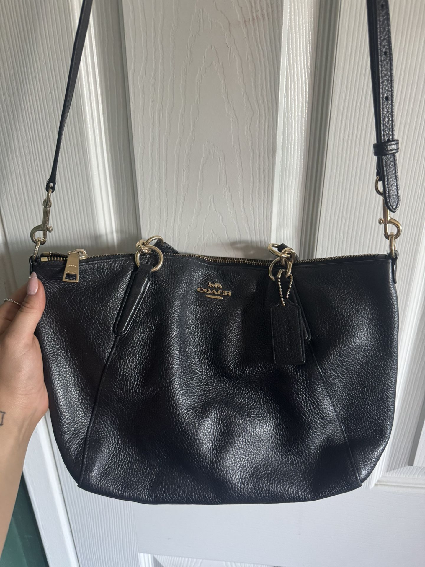 Large Black Leather Coach Crossbody Purse - NEED CLEANING INSIDE