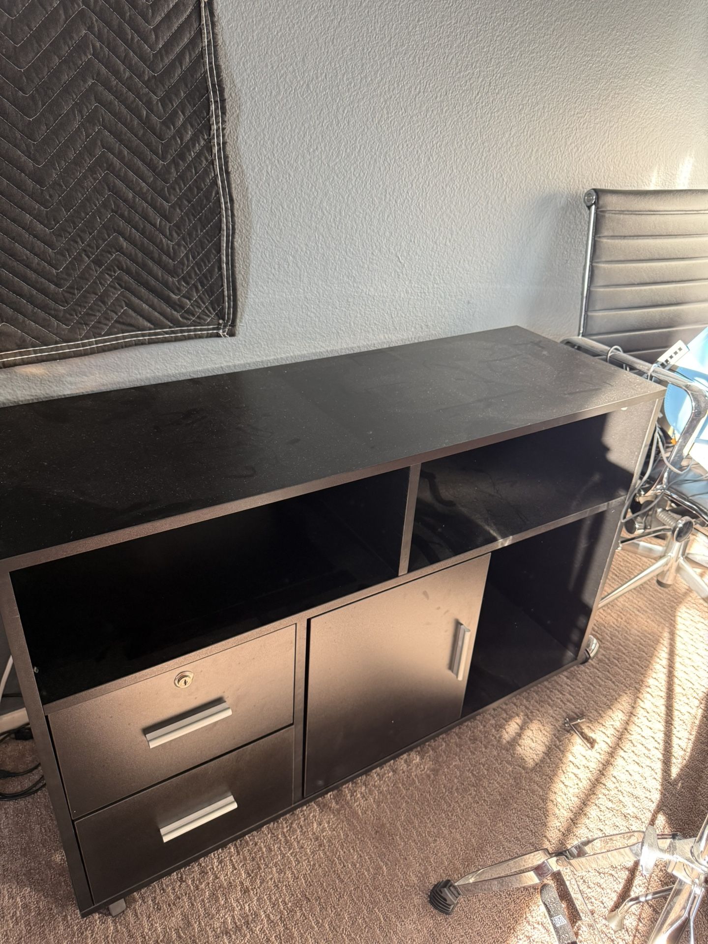 I have two Black Storage Cabinets – Both with Locking Drawers. These were purchased brand new from Amazon. Great for a home office, craft room, or studio space. Dimensions (Each): Width: 38 inches Height: 26 inches Depth: 13 1/2 inches Both units feature a top drawer with its own lock and key. Large lower cabinet space for binders, tools, or equipment. Modern black finish with a low profile that fits under many desks. Price: $50 each or $90 for the pair.