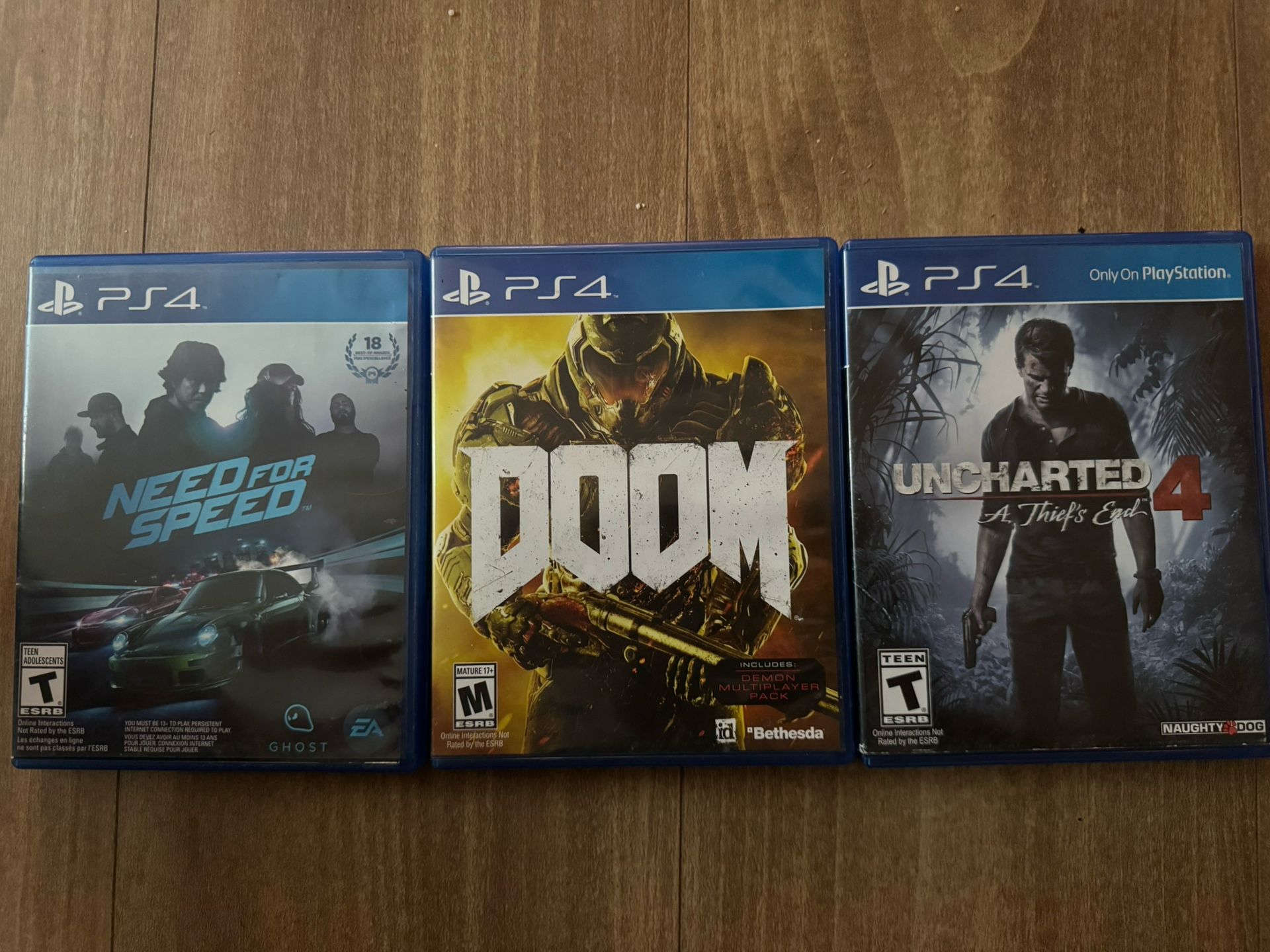 PlayStation 4/ PS4 Games - Uncharted 4, Doom, and Need For Speed