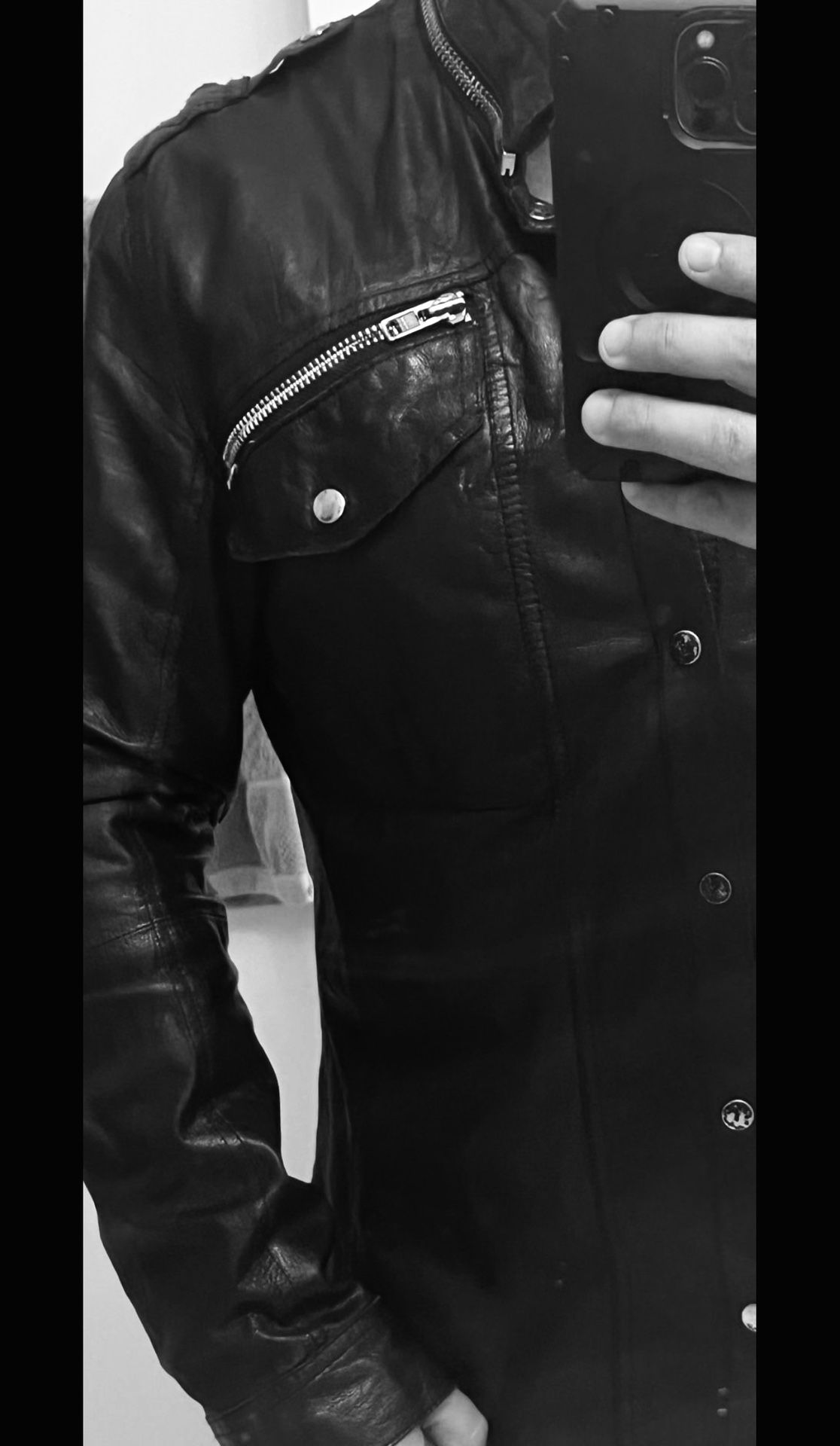 Unique men all saints Spitalfields jacks place leather jacket. Only a few of those jackets were made for fashion shows it was never sold in the USA stores. The original Price was $866. worn only once! Size XL is the very fitting shape