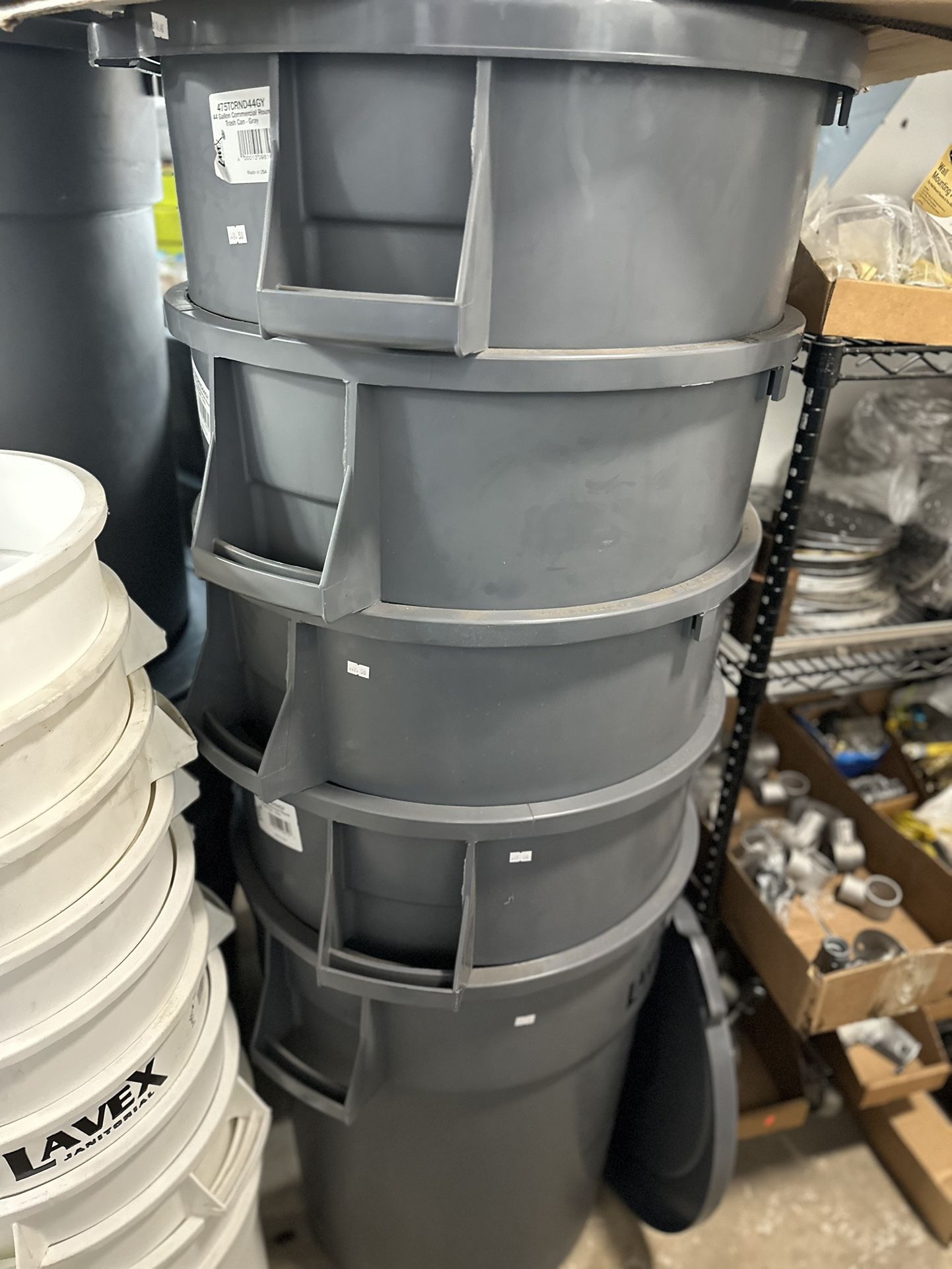 New Cash only Must pickup Round gray 44 gallon $49.50/each Lid sold separately