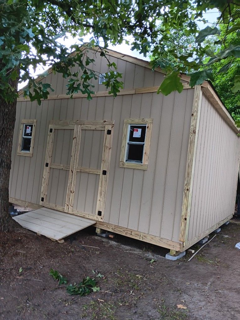 16x16x8 basic building with double door and two small windows and ramp for more information text or call (contact info removed)