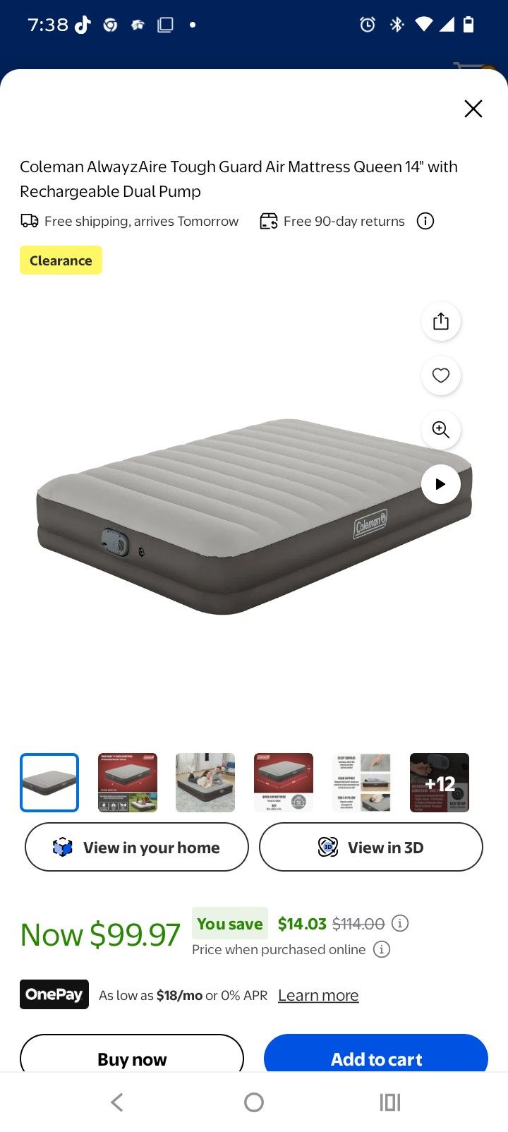 Coleman AlwayzAire Tough Guard Air Mattress Queen 14" with Rechargeable Dual Pump